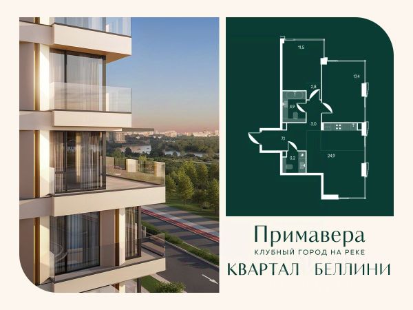 Клубный город на реке "Примавера" — это современный жилой комплекс премиум-класса, расположенный на первой береговой линии Москвы-реки в экологически чистом районе Покровское-Стрешнево. Под панорамными окнами квартир находится собственный экопарк с продуманной сетью прогулочных дорожек и современными детскими и спортивными площадками. За парком расположена набережная с собственным пляжем и зонами для отдыха. Клубный город на реке "Примавера" предлагает широкий выбор планировок для различных жизненных сценариев: от просторных однокомнатных квартир до пентхаусов и жилых помещений с террасами и патио. Выберите из 120 вариантов эргономичных планировок стандартного и евроформата. Из каждой квартиры открываются красивые виды на реку с углом обзора в 270 градусов. Дизайнерские лобби предлагают панорамный обзор на благоустроенный двор. Высокие потолки в 6 метров и качественная отделка создают атмосферу, схожую с пятизвездочными отелями. В "Примавера" есть всё необходимое для комфортной жизни в мегаполисе: • Образование для детей в шаговой доступности: 4 школы, 8 детских садов и развивающие центры с кружками и секциями. • Удобства на расстоянии приятной прогулки: супермаркеты, кафе, рестораны с верандами, салоны красоты, аптеки и многофункциональный центр для шоппинга и развлечений. • Умный дом: автоматизированное бесконтактное управление основными системами доступа и безопасности через мобильное приложение. Клубный город на реке "Примавера" выгодно сочетает комфорт городской жизни с близостью к природе. Живите в месте, где все создано для вашего удобства!