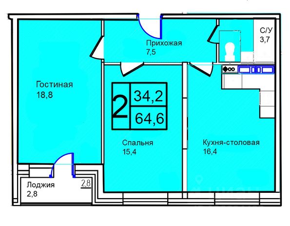 Продаётся 2-комнатная квартира в строящемся доме (Корпус 4), срок сдачи: IV-кв. 2027, общей площадью 64.6 кв.м., на 6 этаже.