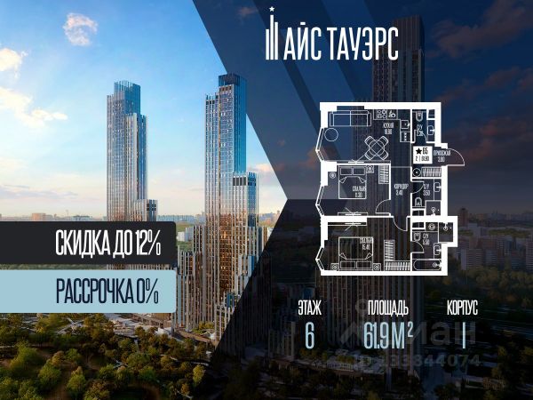 Беспроцентная рассрочка от застройщика. Выгода до 12%. Продается 2-комнатная квартира на 6 этаже, 61.9 кв.м. площади в жилом комплексе "Айс Тауэрс", который расположен в Западном административном округе Москвы. Архитектура комплекса отличается панорамным остеклением фасадов. Квартиры продаются с опциональной предчистовой отделкой. В комплексе установлены системы видеонаблюдения, климат-контроля и элементы системы "умный дом". Территория и расположение На придомовой закрытой территории обустроены детские площадки, спортивные площадки и места для отдыха. Комплекс граничит с особо охраняемой природной зоной, что обеспечивает доступ к прогулочным маршрутам. Инфраструктура комплекса • Общественное пространство с универсальными залами, коворкингом и библиотекой. • Помещения для детских занятий и мастер-классов. • Предусмотрены кабинеты для приема специалистов (стилистов, массажистов). В комплексе работают круглосуточная консьерж-служба и служба доставки (внутри комплекса). Доступны услуги парковки и помощи с багажом. Для повседневного удобства предусмотрены: • Колясочные и велосипедные хранилища. • Душевые для домашних животных и груминг. • Мобильное приложение для управления сервисами.