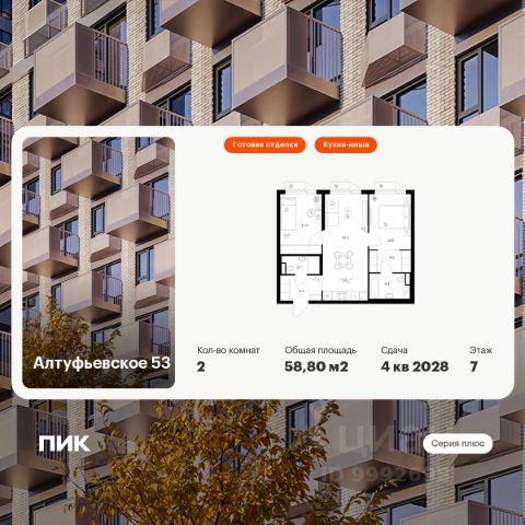 Продаётся 2-комн. квартира площадью 48,9 кв.м на 7 этаже 22 этажного дома (Корпус 1.1, Секция 1) проекта ПИК Алтуфьевское 53. Светлый просторный подъезд на уровне земли, функциональная планировка, большие окна, c отделкой. Проект "Серии плюс" возводится на северо-востоке Москвы. Рядом — удобный выезд на Алтуфьевское шоссе, а оттуда — на ТТК и МКАД, так что до центра Москвы вы доедете на машине примерно за 20 минут. До станции метро "Отрадное" можно доехать на транспорте за 15 минут. За 20 минут получится доехать до станции "Бибирево". Столько же займёт прогулка до станции МЦД "Дегунино". Архитектурную концепцию проекта разработало российское бюро M.A.M. Искусная работа с формой зданий позволила проекту воплотить в себе современную элегантность и функциональность. В проекте представлено множество планировок семейного формата: с мастер-спальнями и комнатами, разнесёнными по разным сторонам квартиры, чтобы у каждого было своё личное пространство. Большие семьи также оценят удобные планировки с постирочными и гардеробными. А также уникальные форматы квартир с террасами, балконами и лоджиями. В проект входят монолитные дома, два детских сада и подземный паркинг. На территории будет городская школа. Во дворах мы построим уютные парки с детскими площадками и местами для отдыха. Здесь вы сможете даже смотреть кино и работать — для этого во дворах-парках будет Wi-Fi. Чуть дальше от домов мы разместим спортивные площадки, чтобы шум от них не мешал жителям. В тихих и быстрых лифтах будут усилители связи, чтобы она не прерывалась и жители продолжали говорить по телефону или проверять соцсети даже перемещаясь между этажами. В окружающем районе есть всё для комфортной жизни: детские сады, школы, торговые центры, парки для прогулок, фитнес-клубы и даже бассейн. Артикул 1003711 (Застройщик ООО СЗ "Перспективные решения")