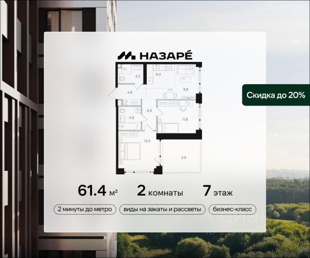 Продается 2-комнатная квартира в ЖК "НАЗАРЕ'" Общая площадь - 62.80 Тип дома - монолитный Этаж - 7 Год сдачи - 2028 Предлагается квартира площадью 62.80 кв. м в новом современном квартале на востоке Москвы, прямо у станций метро и МЦК "Бульвар Рокоссовского". Квартира располагается в корпусе 2 на 7 этаже комплекса бизнес-класса "НАЗАРЕ'". Великолепная транспортная доступность: • 2 минуты ходьбы до метро и МЦК "Бульвар Рокоссовского"; • 3 минуты на авто - удобный выезд на СВХ (МСД); • 10 минут на авто до национального парка "Лосиный остров"; • 10 минут на авто до "Измайловского парка"; • 15 минут до авто до парка "Сокольники"; • 15 минут занимает выезд на ТТК, • 18 минут на авто до Садового кольца. Индивидуальная архитектура в современном стиле: • шесть башен переменной высотности от 24 до 43 этажей, в том числе одна высотная 143-метровая доминанта, которая станет достопримечательностью востока Москвы; • авторы архитектурной концепции - знаменитое бюро СПИЧ (среди их работ - башня "Федерация", новое здание Третьяковской галереи, реконструкция БСА "Лужники" и др.); • торгово-развлекательный комплекс с фитнес-центром, детской игровой комнатой и открытыми террасами прямо возле квартала; • дизайнерские лобби от бюро ABOVE ARCHITECTURE с панорамными окнами, интерьерами в теплой цветовой гамме и мягкой зоной ожидания располагаются в каждой башне; • корпуса расположены так, чтобы из окон открывались потрясающие виды на закаты и рассветы, зеленые панорамы или огни мегаполиса; Особенности расположения "НАЗАРЕ'" находится максимально близко к метро, и в то же время проект вписан в уже существующую инфраструктуру зеленого столичного района Богородское. Это обеспечивает быстрый доступ ко всем нужным объектам инфраструктуры (детские сады, школы, медцентры, магазины, салоны красоты, фитнес-клубы, футбольные поля, спортивные школы), а также к живописным зеленым зонам - национальному парку "Лосиный остров", парку "Сокольники", Черкизовскому детскому парку, Измайловскому лесопарку с усадьбой Измайлово. Собственная инфраструктура и благоустройство Шесть башен квартала будут объединены цокольным этажом, в который можно попасть как с улицы, так и со стороны лобби. Здесь разместятся необходимые для комфортной повседневной жизни кофейни, супермаркет, рестораны, магазины и многое другое. В комплексе предусмотрен вместительный двухуровневый подземный паркинг с келлерами для хранения сезонных вещей. Во дворе комплекса "НАЗАРЕ'" будут места как для спокойного отдыха и работы, так и для игр и спорта. Здесь организованы игровые площадки для детей всех возврастов, места для стритбола и тенниса, а также зона с природным ландшафтом и коворкинг с экологичной деревянной мебелью.