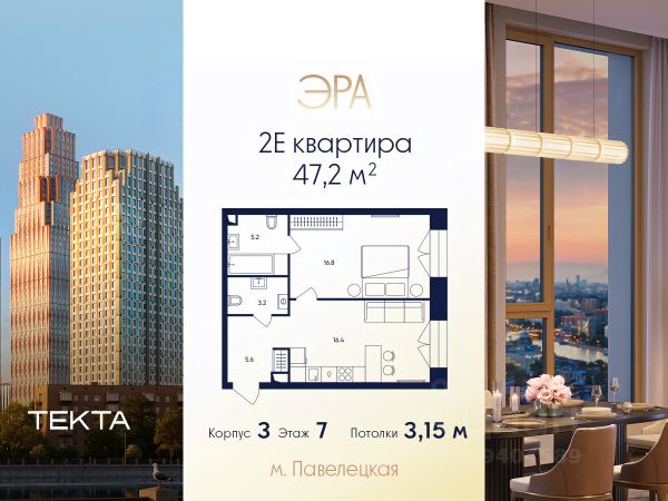 Рассрочка 0% с платежом от 250 000 ₽ в месяц. 2-комн. квартира в ЖК "ЭРА" на 7 этаже в 33 этажном здании Корпус 3. Общая площадь: 45.5 кв.м., жилая: 29.40 кв.м. Высота потолков 3.15 м. Современный премиум-квартал ЭРА на Дербеневской набережной, формирующий новый архитектурный облик Даниловского района Москвы. Жилой комплекс из шести высотных корпусов выполнен в актуальной интерпретации стиля ар-деко, где ритмичные линии фасадов, натуральный мрамор и изысканные орнаменты создают гармоничный и запоминающийся образ. ЭРА предлагает жителям единый просторный закрытый двор. Инфраструктура двора включает разнообразные детские игровые площадки, зоны для занятий спортом, а также места для спокойного отдыха — в всесезонном зеленом лабиринте или яблоневом саду. Для озеленения территории планируется высадка около 3000 деревьев и кустарников. Их сохранность обеспечат система автополива, а для комфорта в холодное время года малые архитектурные формы будут оборудованы подогревом. Первая очередь комплекса представлена тремя корпусами высотой от 27 до 33 этажей. Жителей встречают величественные входные группы по авторскому проекту бюро ХААСТ с высотой потолков 6,5 метров. Для максимального удобства каждая из них оборудована гостевым санузлом, просторной колясочной с выделенной зоной для мойки колес и лап питомцев. Доступ обеспечивается через современные системы безопасности: теплые тамбуры оснащены вызывными панелями с биометрическим контролем. Двери оборудованы электроприводами, что позволяет входить без усилий. В каждом вестибюле создано уютное лаунж-пространство — идеальная зона для отдыха или встречи гостей, дополняющая образ безупречного сервиса. Жителям комплекса доступен подземный паркинг с расширенной инфраструктурой. Здесь, для вашего удобства, расположена собственная автомойка на три поста. Паркинг также оборудован персональными кладовыми помещениями и специальными мусорокамерами на каждом из -1 этажей. Ключевое преимущество — превосходная локация в развивающемся районе с готовой инфраструктурой. Всего в 5 минутах от Садового кольца, в шаговой доступности от Замоскворечья и набережной Москвы-реки, вы сможете наслаждаться динамикой городской жизни. При этом в самом комплексе на первых этажах будут работать кафе, магазины, салоны красоты и детские образовательные пространства. ЭРА — это гармоничный симбиоз статусного адреса, безупречного сервиса и приватности для жизни вашей мечты.