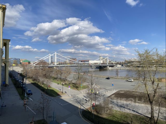 Продается ВИДОВАЯ 3-комнатная квартира на Фрунзенской набережной. ПРЯМОЙ ВИД на Москва-реку, Крымский мост и парк Горького. В 3 минутах пешком через благоустроенный зелёный сквер находится станции метро "Парк Культуры". Третий этаж, но учитывая высоту потолков 3,5 метра и высокий первый этаж, это уровень четвёртого этажа. Квартира угловая, окна двух спальных комнат выходят параллельно дороге, а кухня с балконом и гостиная имеют ПРЯМОЙ ВИД на Москва-реку!!! Общая площадь квартиры составляет 64.5 кв. м, гостиная 16,9, две спальни 15,4 и 12,1, кухня 9 кв. м., с/у раздельный. Квартира в хорошем состоянии (фото позднее), высота потолка 3,5 метра, высокие двери в комнатах, большие окна, паркет, два кондиционера. Зелёный двор, въезд через шлагбаум, закрытая парковка для жителей дома. Свободная продажа, один взрослый собственник, полная стоимость в ДКП, перепланировок нет, ипотека возможна.