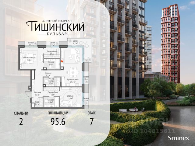 В продаже 2-комнатная квартира квартира в элитном квартале "Тишинский бульвар". Общая площадь квартиры - 119.60 кв.м. Этаж 7 из 7. Корпус Ивовый 4. "Тишинский бульвар" - тихий зелёный элитный квартал на Тишинке, в престижном и комфортном районе центра Москвы. В нём создан уникальный для элитного дома прогулочный бульвар в своём огромном парке 1,9 га. В парке оборудованы зоны для активного и тихого отдыха, крытые галереи, приватные зелёные комнаты, многофункциональная спортивная площадка, воркаут-зона, детская площадка, сухой фонтан, ручей. В пешей доступности Римско-католический кафедральный собор. Всего в полутора километрах от квартала находятся Патриаршие пруды - излюбленное место для летних прогулок, воскресных бранчей и романтических ужинов. Белая площадь расположена ещё ближе - на расстоянии 1,2 километра. Это точка концентрации деловой жизни и модных ресторанов. В "Тишинский бульваре" только для жителей и их гостей создан уникальный для элитного дома прогулочный бульвар в собственном огромном парке площадью 2,1 га, который занимает 70% территории квартала. Бульвар проходит через весь квартал и объединяет в общее пространство три двора: Кленовый, Рябиновый и Ивовый. В парке созданы крытые галереи и приватные зелёные комнаты для отдыха и медитаций в любую погоду. Насыщенное озеленение многолетними растениями с разными периодами цветения сохраняет территорию квартала красивой круглый год. В квартале насыщенная инфраструктура только для жителей, включая Clubhouse. Здесь оборудованы пространства для здорового образа жизни по стандарту FIT LAB: в парке - многофункциональная спортивная площадка, воркаут-зона, место для занятий йогой и медитации; бесплатный фитнес-клуб с бассейном. Для маленьких жителей доступны детская площадка и игровая комната по стандарту KIDS LAB. Дома оснащены самыми полными и лучшими системами.