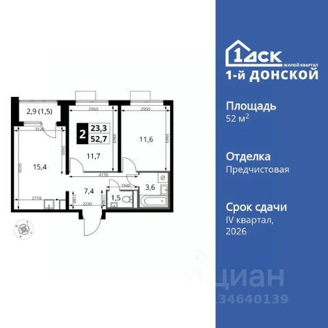 Прямая продажа от застройщика! Жилой Комплекс класса Комфорт Плюс. Продаётся 2-к квартира номер 539 общей площадью 52.7 кв.м. на 7-м этаже 24 этажного здания. Отделка Whitebox. Особенности квартиры: - МЦД-5 в пешей доступности - Квартал с собственной набережной - Свои 2 детских сада и школа - Линейная планировка - максимальная функциональность и удобство. - Просторная кухня - место для семейных ужинов и кулинарных экспериментов. - Лоджия - уютное место для отдыха и тишины. Квартира с предчистовой отделкой (White box). Вам не придется заниматься черновыми и трудоёмкими работы, а чистовую отделку и дизайн - сделайте на свой вкус. Информация о комплексе: Комплекс 1-й Донской расположен в 7 км от МКАД по трассе М-4 Дон. В нем сочетаются все плюсы комфортной городской среды и природного окружения. В проекте достаточно большой процент квартир, выходящих на 2-3 стороны света. Секции-маяки формируют у зданий визуальную L-форму, что придает застройке структуру и ритмику объемов. На ощущение динамики работает и разная этажность зданий. Теплая цветовая палитра фасадов отражает природу Дона. Вечерами дома преображаются благодаря архитектурной подсветке, выгодно выделяясь на городском фоне. Природа оказывает положительное влияние на человека на всех уровнях восприятия: через зрение, запахи, звуки, тактильные ощущения. Неподалеку от ЖК Первый Донской: Ермолинский парк, Видновский лесопарк, Жуковский парк Транспортная доступность: Комплекс удобно расположен в 7 км от МКАД по трассе М-4 Дон (через Видное). Расстояние до Каширского шоссе составляет 12 км. Добраться до метро и центра Москвы позволяет развитая сеть маршрутов общественного наземного транспорта. Действующая ж/д станция Калинина Павелецкого направления в 15-17 минутах ходьбы (МЦД-5 в 2025-2026 гг). Внутренняя инфраструктура: Проект 1-й Донской соседствует с бурно развивающимся районом, основная инфраструктура которого уже сложилась. В строительстве современных жилых комплексов в округе есть свои плюсы: здесь формируется продуманная и комфортная городская среда. Что касается внутренней инфраструктуры, на территории квартала будут расположены собственные муниципальные 2 детских садика и школа, которые помогут совместить приятное с полезным. Территория комплекса пронизана целой сетью живописных пешеходных маршрутов, позволяющих попасть в любой уголок района. Основные пути, как водится, "торговые". Они проходят вдоль магазинов, кафе и других представителей коммерции и отделяются от проезжей части зеленой "фито" - стеной. Среди крупных социальных объектов предусмотрены своя поликлиника и торговый центр с примыкающей площадью для общественных мероприятий. Уют начинается с продуманного подъезда. Сквозные подъезды наполнены светом благодаря сплошному остеклению. Вход в них есть и с улицы, и со двора.