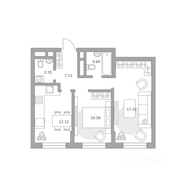 Продаётся 2-комнатная квартира 434, площадью 58,71 м², на 7 этаже в ЖК "Живописный" корпус 2.2. Стоимость — от 11606304 руб. Квартира без отделки, планировка односторонняя, окна во двор.