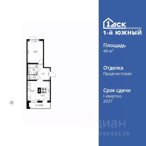 Прямая продажа от застройщика! Жилой Комплекс класса Комфорт Плюс. Продаётся 2-к квартира номер 570 общей площадью 48.5 кв.м. на 7-м этаже 24 этажного здания. Отделка Whitebox. Особенности квартиры: - МЦД-5 в пешей доступности - Квартал с южным садом - Свои 3 детских сада и 2 большие школы - Распашная планировка - отличное сочетание удобства и свободы. - Раздельный санузел - больше удобства для всех членов семьи. - Евроформат - просторное и удобное жилье с отличной планировкой. - Можно оборудовать рабочее место - комфорт для работы и учёбы. - Линейная кухня - функциональность и практичность в одном решении. - Просторная лоджия - идеальное место для уютных вечеров. Квартира с предчистовой отделкой (White box). Вам не придется заниматься черновыми и трудоёмкими работы, а чистовую отделку и дизайн - сделайте на свой вкус. Информация о комплексе: Одно из преимуществ проектов 1- ДСК большие застекленные лоджии. Другое преимущество честный евро-формат. Во всем проекте предусмотрена система Умный дом. В состав устанавливаемого пакета устройств входит: WiFi реле для управления группами потребителей, беспроводной кран перекрытия с эл. приводом, беспроводной сенсор протечки, Яндекс Станция Мини. Его расположение можно назвать удачным за счет транспортной доступности и близости к природным объектам. По соседству лес, а в каждом дворе плодовые деревья. Весной квартал окутывает бело-розовое облако: это цветут яблони, груши, сливы. К августу в воздух наполняется ароматом созревших плодов. Зимой среди покрытых инеем деревьев протянулась лыжня. Транспортная доступность: - Общественный транспорт: Действующая ж/д станция Булатниково (в перспективе будущая МДЦ D5) в пешей доступности, всего 10-12 минут. - Личный автотранспорт: Удобный выезд на трассу М4-Дон в сторону Москвы и области 850 м, до МКАД - 1 км Внутренняя инфраструктура: Красивые продуманные подъезды - еще одно преимущество проекта 1-й Южный. Вход в сквозные подъезды есть и с улицы, и со двора. Благодаря сплошному остеклению в них всегда светло и уютно. Подъезды расположены на уровне земли, поэтому и молодым родителям с коляской, и жильцам с ограниченными возможностями вход и выход неудобств не доставят. В помещении предусмотрено место под стойку ресепшен с выводом инженерных сетей. Если жильцы решат на общем собрании, что необходим охранник или консьерж, организовать для них рабочее место можно быстро и с минимальными затратами. В подъездах предусмотрены уборные для детей и взрослых. Колясочные в каждом подъезде позволяют поддерживать порядок и чистоту на этажах. На случай прогулки с четвероногим питомцем в непогоду в подъездах устроены лапомойки. Во дворах и на общественных территориях 1-ого Южного столько всего интересного для юных обитателей. Собственные 3 детских сада и 2 больших школы буквально под окнами Изюминка проекта - пешеходный бульвар-дендрарий, он идеален для семейных прогулок. По сторонам прогулочной зоны разместились точки для самых разнообразн