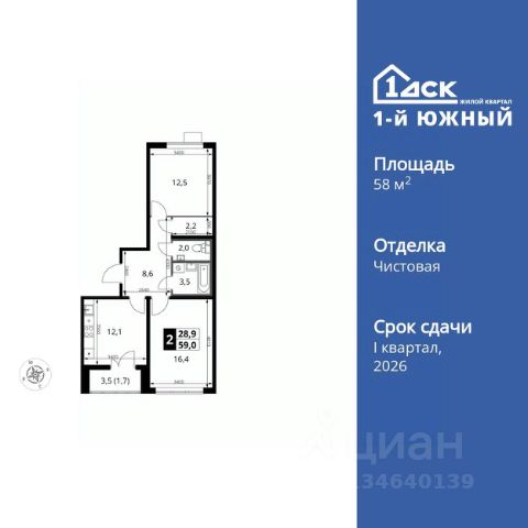 Ваша новая квартира в ЖК "1-й Южный" — городе-саде рядом с природой и городским комфортом! О квартире: • Общая площадь: 59 м², "распашонка" — просторная и уютная, • Большая кухня с лоджией — идеальное место для завтраков и ужинов, с возможностью расширения пространства за счет лоджии, • Раздельный санузел — удобство для всех членов вашей семьи, • Гардеробная — дополнительное место для хранения вещей и порядка в квартире, • Ремонт: White Box + отделка и сантехника в ванной и туалете позволяет сделать дизайн квартиры на свой вкус, избежав самых трудоемких и дорогих работ черновой отделки. Остается только поклеить обои или покрасить стены и выполнить укладку финального напольного покрытия, • Современные технологии для удобства: контроль протечек и управление освещением с помощью мобильного приложения или голосового помощника "Алиса". Возможно подключить совместимые бытовые приборы (чайники, стиральные машины, роботы-пылесосы и т. д.) О комплексе и доме: • Дом сдан, ключи 1 полугодие 2026 г., • Красивые продуманные подъезды расположены на уровне земли, что добавляет удобство для молодых родителей с колясками и жильцам с ограниченными возможностями, • Стойка для организации охраны или консьержа, • Мягкая зона с диванами и креслами вдоль панорамного окна можно работать как в коворкинге, • Колясочные в каждом подъезде - это порядок на этажах и в самих квартирах, • Лапомойки всегда чистые лапки вашего питомца и чистота в вашей квартире, • Двор без машин безопасность для вас, ваших детей и питомцев. • Видеонаблюдение на детских площадках наблюдайте за своими детьми прямо с экранов смартфона Инфраструктура: • Детские сады и школы под окнами: 3 детских сада (330, 500 и 600 мест) и 2 школы (1725 и 1250 мест), • Подземные и наземные паркинги, кладовые помещения, • Оборудованные детские и спортивные площадки, • Собственная поликлиника, • Для прогулок и отдыха - Видновский лесопарк, Герценский парк, Фруктовый сад, Бирюлевский дендрарий, • Супермаркеты: Гипер Лента, Пятерочка Транспортная доступность: • Общественным транспортом: действующая ж/д станция Булатниково (будущая МЦД D5) всего в 10 минутах пешком, на маршрутном такси - до м. Домодедовская и Царицыно — 15 мин, до м. Липецкая (планируемая станция) — 10 мин, до м. Лебедянская (планируемая станция) — 7 мин, • На автомобиле: удобный выезд на трассу М4-Дон в сторону Москвы и области — 850 м, а также МКАД в пределах 1 км. Ипотека возможна. Оформление сделки специалистами вторичного отдела ГК "ФСК".