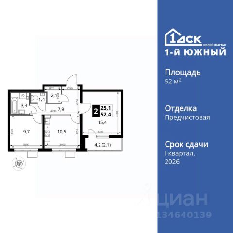 Прямая продажа от застройщика! Жилой Комплекс класса Комфорт Плюс. Продаётся 2-к квартира номер 226 общей площадью 52.2 кв.м. на 7-м этаже 25 этажного здания. Отделка Whitebox. Цена с учётом скидки. Особенности квартиры: - МЦД-5 в пешей доступности - Квартал с южным садом - Свои 3 детских сада и 2 большие школы - Просторная спальня, в которой можно разместить большую кровать. - Линейная планировка - максимальная функциональность и удобство. - Гостевой санузел - комфорт и удобство для ваших гостей. - Раздельный санузел - больше удобства для всех членов семьи. - Просторная мягкая зона - комфорт и уют для отдыха всей семьи. - Возможность добавить спальное место - дополнительный комфорт для гостей. - Гардеробная - удобство для хранения и организации вещей. - Просторная лоджия - идеальное место для уютных вечеров. Квартира с предчистовой отделкой (White box). Вам не придется заниматься черновыми и трудоёмкими работы, а чистовую отделку и дизайн - сделайте на свой вкус. Информация о комплексе: Одно из преимуществ проектов 1- ДСК большие застекленные лоджии. Другое преимущество честный евро-формат. Во всем проекте предусмотрена система Умный дом. В состав устанавливаемого пакета устройств входит: WiFi реле для управления группами потребителей, беспроводной кран перекрытия с эл. приводом, беспроводной сенсор протечки, Яндекс Станция Мини. Его расположение можно назвать удачным за счет транспортной доступности и близости к природным объектам. По соседству лес, а в каждом дворе плодовые деревья. Весной квартал окутывает бело-розовое облако: это цветут яблони, груши, сливы. К августу в воздух наполняется ароматом созревших плодов. Зимой среди покрытых инеем деревьев протянулась лыжня. Транспортная доступность: - Общественный транспорт: Действующая ж/д станция Булатниково (в перспективе будущая МДЦ D5) в пешей доступности, всего 10-12 минут. - Личный автотранспорт: Удобный выезд на трассу М4-Дон в сторону Москвы и области 850 м, до МКАД - 1 км Внутренняя инфраструктура: Красивые продуманные подъезды - еще одно преимущество проекта 1-й Южный. Вход в сквозные подъезды есть и с улицы, и со двора. Благодаря сплошному остеклению в них всегда светло и уютно. Подъезды расположены на уровне земли, поэтому и молодым родителям с коляской, и жильцам с ограниченными возможностями вход и выход неудобств не доставят. В помещении предусмотрено место под стойку ресепшен с выводом инженерных сетей. Если жильцы решат на общем собрании, что необходим охранник или консьерж, организовать для них рабочее место можно быстро и с минимальными затратами. В подъездах предусмотрены уборные для детей и взрослых. Колясочные в каждом подъезде позволяют поддерживать порядок и чистоту на этажах. На случай прогулки с четвероногим питомцем в непогоду в подъездах устроены лапомойки. Во дворах и на общественных территориях 1-ого Южного столько всего интересного для юных обитателей. Собственные 3 детских сада и 2 больших школы буквально под окнами Из