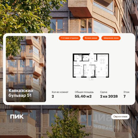 Продажа 2-комнатных квартир на 7 этаже рядом с метро Царицыно