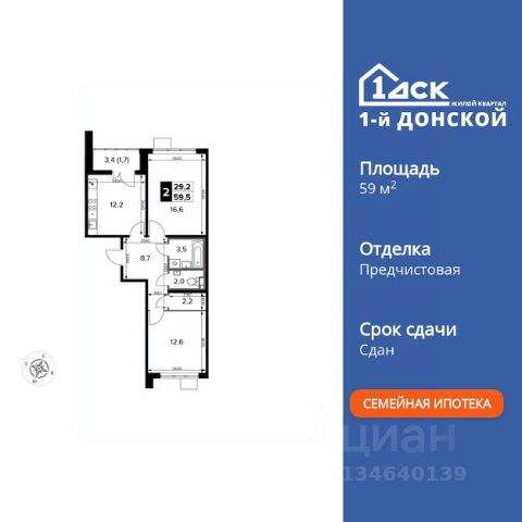 Просторная квартира 61,76 (65,64) м2. Особенность квартиры: выход окон на две стороны света Запад и Восток, панорамные виды из окон, холл 8 м2, комнаты 16,96+13,74 м2, кухня 11 м2, ванная комната и отдельный с/у, две лоджии 3,17 и 4,59 м2.