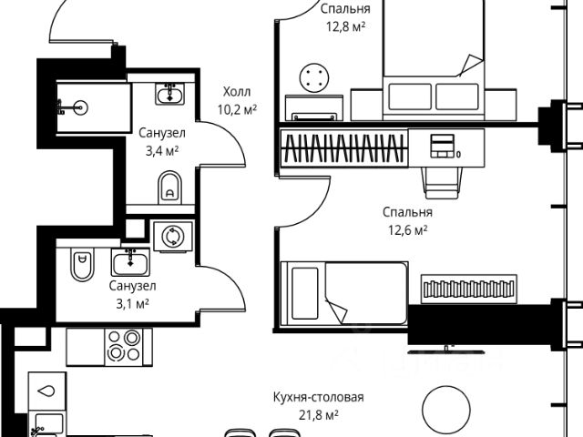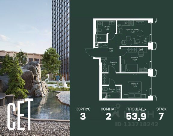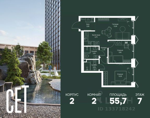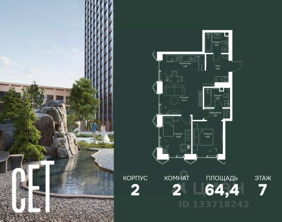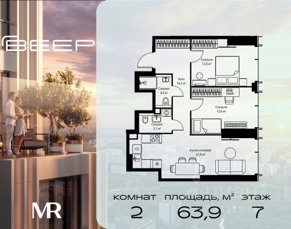 Прямая продажа от застройщика. Продаётся 2-комнатная квартира общей площадью 71.20 м² с предчистовой отделкой в ЖК Веер на 7-м этаже 59 этажного дома. Жилой комплекс бизнес-класса Веер от компании MR — это футуристичный мультиквартал, расположенный в престижной локации на западе Москвы. Благодаря переменной высоте башен — двух 22-этажных, 46-этажной и двух 59-этажных — возникает динамичность в силуэте комплекса, а его яркий образ вносит разноплановость в архитектурный пейзаж района. Расположение и транспортная доступность: • Веер удобно расположен в непосредственной близости от Кутузовского проспекта, обеспечивая быстрый доступ к центральным районам Москвы • Комплекс находится непосредственно напротив самого большого природного заказника в Москве - парка "Долина реки Сетунь", а за семь минут можно доехать до памятника садово-паркового искусства, Троекуровского леса. • Всего в 15 минутах - центр города, самая престижная бизнес-школа управления России "Сколково", дом творчества "Переделкино". Инфраструктура: Разнообразить свой день резиденты Веер смогут также проводя больше времени на свежем воздухе. Двор разделен на 4 зоны разных эмоций и действий, которые пересечены и соединены веерными прогулочными маршрутами: • Спортивная площадка устроена в глубине "Кленовой рощи" • В "Чайном домике" будет создан навес с утеплением для отдыха в любую погоду • Площадки для детей воплотятся в "Волшебный лес" с цветами, зеркалами и световым дизайном • "Центральная площадь" устроена у водного оазиса живописного пруда. Компания MR предлагает своим клиентам специальные условия приобретения квартир в рамках программ ипотечного кредитования от банков-партнеров.