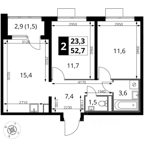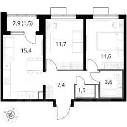 Просторная квартира 61,76 (65,64) м2. Особенность квартиры: выход окон на две стороны света Запад и Восток, панорамные виды из окон, холл 8 м2, комнаты 16,96+13,74 м2, кухня 11 м2, ванная комната и отдельный с/у, две лоджии 3,17 и 4,59 м2.