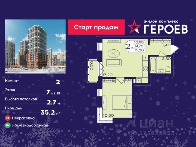 • ✓ В базе Циан 53 2-комнатных квартир на 7 этаже рядом с метро Некрасовка