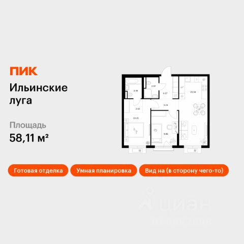 Продаётся 2-комн. квартира площадью 51,98 кв.м на 7 этаже 9 этажного дома (Корпус 4.1, Секция 5) проекта ПИК Ильинские луга. Светлый просторный подъезд на уровне земли, функциональная планировка, большие окна, c отделкой. Жилой район "Ильинские луга" находится в 10 километрах от МКАД по Новорижскому шоссе, в 20 минутах на автомобиле от станций метро "Волоколамская", "Тушинская" и "Строгино". В будущем ближе к проекту, в 9 минутах пути на машине, откроется станция "Ильинская" Рублёво-Архангельской линии, которая будет соединять Арбатско-Покровскую линию и Большую кольцевую линию. Сейчас в квартале начались продажи в корпусах 3.2, 3.3, 3.4, 3.5 и 3.6. "Ильинские луга" — масштабный проект, в который входит девять детских садов, четыре школы и поликлиника. Он строится в престижном и экологичном районе среди лесов и памятников природы. За 5 минут от жилого квартала можно доехать до Рублёво-Успенского шоссе, а за 30 минут — до центра Москвы. До крупного торгового центра "РИГАМОЛЛ" всего 5 минут на автомобиле, а до ТЦ "Твой дом" и гипермаркета "Глобус" — 10 минут. В "Ильинских лугах" строятся только девятиэтажные дома — такая архитектура соответствует спокойной жизни за городом. В каждом дворе-парке есть места для отдыха, детские и спортивные площадки. А ещё, здесь уже открыт большой PlayHub "Гравити" — современное игровое пространство с космической тематикой, холмами, зонами для игр и отдыха жителей любого возраста. На первых этажах уже работают магазины, кафе и пекарни. Места для отдыха от "Ильинских лугов" тоже недалеко: 10 минут на машине — и вы в музее-усадьбе "Архангельское". Также рядом находится Лохин остров — памятник природы, где водятся речные черепахи, есть места для кемпинга и возможность сплавиться по реке. Артикул 1016212 (Застройщик ООО "СЗ "ГРАДОЛИМП")