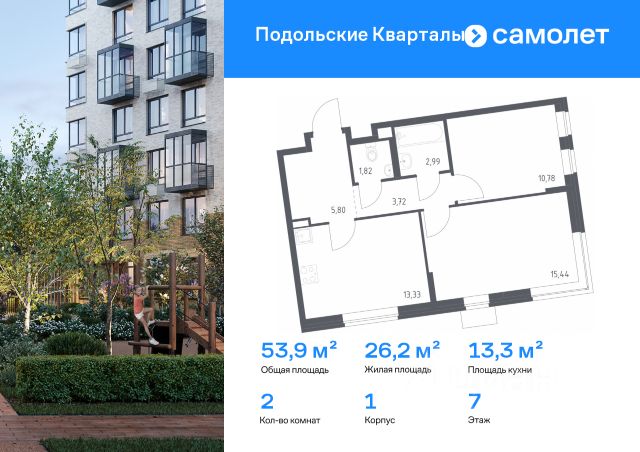 Строим кварталы для жизни с заботой о будущем. Предлагается 2-комнатная квартира комфорт-класса 53,88 кв.м в корпусе 4 на 7 этаже, в ЖК "Подольские Кварталы" Квартира без отделки. Доступность опции "отделка" и возможность комплектации мебелью и декором уточняйте у застройщика. Приобрести квартиру возможно по специальным акциям от застройщика, с текущими условиями акций можно ознакомиться в блоке "Акций". Цена динамическая и может отличаться, уточняйте актуальность у застройщика. "Подольские кварталы" — жилой комплекс в Новой Москве, рядом с Дубровицким лесом и рекой Десной. До станции МЦД-2 "Остафьево" - 5 минут на общественном транспорте, до станции МЦД-2 "Силикатная" — 8 минут на машине. Рядом — музей-заповедник "Остафьево", усадьбы Плещеево и Дубровицы. В квартале будут детский сад на 200 мест и учебно-воспитательный комплекс на 1 500 мест, в который войдут школа и детский сад. Первые этажи жилых корпусов займут квартиры, кафе, магазины и салоны красоты. Дворы-парки будут радовать жителей цветением и зеленью: здесь высадят липы, сосны, ели, клены и сирень. Плэйхаб станет местом встреч всех любителей активного отдыха: застройщик оборудует зоны тренажеров и воркаута, площадки для игр в настольный теннис, мяч, шахматы. Также появятся современные игровые площадки для детей. Для автовладельцев предусмотрен многоуровневый паркинг. В проекте — монолитные дома высотой от 9 до 12 этажей. Теплые оттенки фасадов соответствуют дизайн-коду "Янтарный берег". Фасады облицованы ложковой кирпичной кладкой.