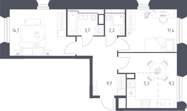 О квартире Продаётся 2-комнатная квартира общей площадью 65.2 кв.м. без отделки. Квартира расположена на 7 этаже корпуса 5.7 в жилом комплексе бизнес-класса "Среда на Лобачевского" в пешей доступности от метро "Аминьевская". О жилом комплексе "Среда на Лобачевского" полностью соответствует критериям современного жилого пространства. Взяв за основу рациональный подход, мы гармонично соединили дизайн, актуальные тренды и функциональность. Продуманный современный экстерьер и функциональные планировки внутри, приватные пространства и разнообразные досуговые зоны для каждого члена семьи — все это "Среда на Лобачевского". Инфраструктура Район отлично развит и наполнен жизнью, здесь уже есть вся необходимая инфраструктура — детские сады, школы, медучреждения, торговые центры, благоустроены парки для прогулок и отдыха, удобен и легкодоступен городской транспорт. Рядом расположены учебные корпуса крупных университетов — МГУ, МГИМО и РАНХиГС. Школы и детские сады в районе занимают высокие позиции в городских рейтингах, поэтому вам не придется беспокоиться о качестве образования детей. Как и об отдыхе: поблизости расположены живописные пруды, реки и парки. Это Парк Олимпийской деревни, Парк имени 50-летия Октября, Мещерский парк и Очаковские пруды. Теперь поставить галочки в еженедельном чек-листе "спорт-прогулки-встречи с друзьями" можно, не покидая любимый район. Особенности Особое внимание в проекте уделяется созданию функциональных пространств не только внутри дома, но и за его пределами. В ландшафтном парке "Среды на Лобачевского" расположены крытые зоны для спокойного времяпровождения, места для активного отдыха и спорта, коворкинг, соседский комьюнити-центр, водные объекты. —Ландшафтный парк во дворе. —Водный сад с зонами отдыха. —Зоны коворкинга. —Дизайнерские гранд-лобби. —Бесключевой доступ. —Подземный паркинг.