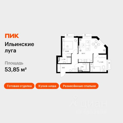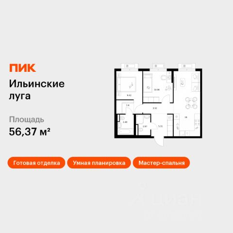 В продаже — однокомнатная квартира, общей площадью 59,5 кв. м. Квартира расположена на седьмом этаже десятиэтажного дома класса Оптимум в квартале В17 нового района СберСити, который строит Сбер. Всего в доме — 55 квартир. Квартал В17 — современная интерпретация голландской архитектуры. Каждый корпус имеет индивидуальный облик. В домах класса Оптимум используется лаконичная крупноформатная облицовка стеклофибробетоном и декоративными металлическими панелями. На верхних этажах расположены квартиры с панорамным остеклением и террасами, с которых открываются виды на город, парки и бульвар. Установлены двухкамерные стеклопакеты с алюминиевым профилем и скрытыми створками. В квартирах предустановлена система "умный дом" — комплекс решений, объединяющий квартиру, дом и прилегающую территорию. Жильцы смогут регулировать климат и освещение голосом или со смартфона, установлена защита от протечек. В доме расположены: • уютное лобби, • коворкинг, • общественная терраса, • детская игровая комната, • лапомойка, • колясочная и велосипедная комната на первом этаже, • подземный паркинг. Квартал В17 состоит из шести корпусов переменной этажности (от 1 до 10 этажей) и 491 квартиры. Корпуса объединены общей подземной частью, где расположен паркинг на 309 автомобилей, места для мотоциклов и более 400 кладовых помещений. Во дворах созданы приватные благоустроенные пространства с ландшафтными композициями, детскими и спортивными площадками, зоной для йоги, прогулочными маршрутами и местами отдыха. Рядом расположен детский сад, парк и набережная Москвы-реки. СберСити — это новый жилой и деловой район на западе Москвы, в одном из самых экологически чистых и престижных мест столицы. Это первая в России и крупнейшая в мире инновационная городская среда, созданная по международным стандартам зелёного проектирования. Здесь внедряются решения в области энергоснабжения, вакуумного мусороудаления, тестирования зелёных технологий, а в дальнейшем — системы искусственного интеллекта для управления домами и городской инфраструктурой. Строительство проекта началось в 2021 году, заселение первых корпусов — с лета 2024-го. Общая площадь территории — 461 га, из них более 2,5 млн кв. м жилья и около 833 тыс. кв. м офисных пространств. Будет построено 7 школ, 13 детских садов и 2 поликлиники. В СберСити будут жить 65 тыс. человек и работать 70 тыс. Развитием территории занимается АО "Рублёво-Архангельское", входящее в группу Сбер. СберСити — место, где хочется жить, работать и растить детей. Переезжайте в СберСити!