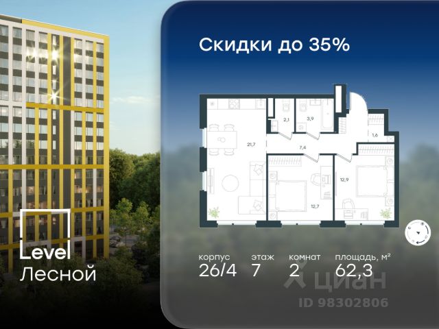 Новостройка! Продается 2-комн. кв-ра площадью 55,22 кв.м, (Корпус 3.4, Секция 4) 7 этаж 32-этажного дома в Квартал Мит от ПИК. "Квартал Мит" строится в экологически чистом районе Митино, где по соседству расположен большой лесопарк, а с двух сторон протекают реки Сходня и Журавка. Для семей с детьми здесь появится школа и два детских сада. В 20 минутах пешком находится станция метро "Пятницкое шоссе", а за 10 минут на автомобиле можно доехать до МКАД. Архитектура от бюро Slava+ Концепция квартала сочетает эстетику и функциональность. Башня-доминанта цвета красной охры и разновысотные корпуса терракотового, белого и графитового оттенков формируют узнаваемый силуэт современного городского пространства. Просторные террасы, разнообразные балконы и окна в пол придают облику динамичность и дарят квартирам уютные места для отдыха. Первые этажи с панорамными окнами создают сцену для яркой городской жизни. Здесь появятся пространства для прогулок, летние террасы, рестораны и коммерческие помещения. Комфорт "Серии плюс" При входе в дом жителей встретят светлые просторные лобби с высокими потолками — попасть сюда можно как со стороны улицы, так и со двора. В лобби будет зона ожидания, велосипедная и колясочная. Быстро и с комфортом подняться на нужный этаж помогут бесшумные скоростные лифты. На подземном этаже появится паркинг и индивидуальные кладовые, где удобно хранить сезонные вещи. #d17.11# Артикул 1034718 (Застройщик АО СЗ "ПФК")