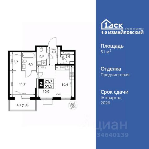 Продаётся 2-комн. квартира площадью 59,3 кв.м на 7 этаже 43 этажного дома (Корпус 1.1, Секция 1) проекта ПИК 2-й Иртышский. Светлый просторный подъезд на уровне земли, функциональная планировка, большие окна, c отделкой. "2-й Иртышский" возводится на востоке Москвы, между тремя станциями метро "Щелковская", "Черкизовская" и "Бульвар Рокоссовского". Проект включает жилые корпуса с индивидуальной архитектурой, школу и детский сад. Проект состоит из зданий разной высоты и разной по характеру архитектуры. Узнаваемой доминантой квартала станет башня из стекла и металла, напоминающая водопад. Квартал расположен в окружении нескольких знаковых рекреационных зон столицы. Вам понадобится всего несколько минут, чтобы оказаться в атмосфере спокойствия и слияния с природой. Всего 15 минут пешком, и вы в "Сиреневом саду", а дорога до национального парка "Лосиный остров" или Гольяновского пруда займёт 6 минут на авто. До Черкизовского детского парка и "Усадьбы Измайлово" можно доехать за 15 минут. До станции "Черкизовская" можно дойти пешком за 25 минут или доехать на общественном транспорте за 20. Дорога до станций "Бульвар Рокоссовского" и "Щёлковской" займёт 25 минут на общественном транспорте. Автомобилисты оценят удобные выезды на Щёлковское шоссе и СВХ. Путь до МКАД займет около 14 минут, до ТТК - 20. Артикул 980630 (Застройщик ООО "СЗ "Л-Девелопмент")