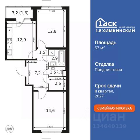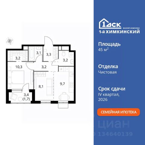 • ИПОТЕКА 10% ДЛЯ ВСЕХ БЕЗ НАЦЕНОК • ДОСТУПНО ПО СЕМЕЙНОЙ ИПОТЕКЕ Прямая продажа от застройщика! Жилой Комплекс класса Комфорт. Продаётся 2-к квартира номер 163 общей площадью 49.9 кв.м. на 7-м этаже 10 этажного здания. Без отделки. Цена с учётом скидки. Особенности квартиры: - Линейная планировка - максимальная функциональность и удобство. - Просторная ванная - место для расслабления и уединения. - Раздельный санузел - больше удобства для всех членов семьи. - Евроформат - просторное и удобное жилье с отличной планировкой. - Линейная кухня - функциональность и практичность в одном решении. - Гардеробная - удобство для хранения и организации вещей. - Ниша под шкаф - компактное и удобное место для вещей. - Лоджия - уютное место для отдыха и тишины. Информация о комплексе: Квартал класса комфорт плюс, где современное городское пространство граничит с удивительной природой вокруг. 1-й Химкинский расположен на территории в 102 га и органично вписан в природное окружение Химкинского леса и канала им. Москвы. В проекте предусмотрена богатая коммерческая инфраструктура с собственным торговым центром, общеобразовательные учреждения и социальные объекты. Изюминкой жилого комплекса будут спортивно-оздоровительный комплекс с термами и SPA и семейный парк развлечений. Транспортная доступность: ЖК "1-й Химкинский" дает возможность выбрать любой способ передвижения как до города, так и до самых разных объектов, которые могут представлять интерес для его жителей. Не важно, какой способ передвижения вы предпочитаете, успевать всегда и везде можно вне зависимости от выбора транспорта. - 8 мин. пешком (800 м) до остановки "Золотая Арка" -10 мин пешком (1 км) до остановки "Поворот на Ивакино" Внутренняя инфраструктура: - Безопасность: закрытые дворы без машин, безбарьерная среда и сквозные подъезды, камеры на детских площадках с возможностью трансляции на смартфоне - Идеальный отдых в кругу семьи: семейный парк развлечений на территории, торговый центр (2-х этажный) общей площадью более 8 тыс. кв. м с фудкортом - Образование: 3 детских сада и современная муниципальная школа на 2450 мест - Спортивная среда: закольцованный веломаршрут с навигацией, спортивный комплекс с термами, закрытый тренажерный зал и зоны ворк-аута - Социальные объекты: поликлиника со станцией скорой помощи, пожарное депо - Подземный паркинг и кладовые помещения на -1 этаже, станция техобслуживания и автомойка на территории