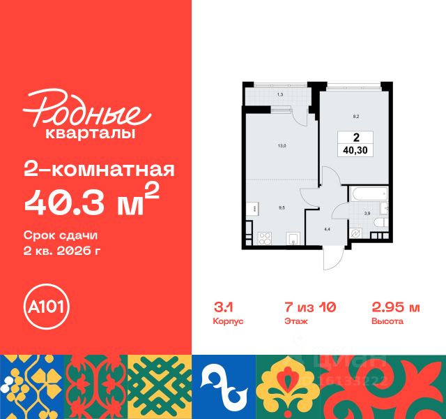 Прямая продажа от застройщика. Продаётся 2-комнатная квартира общей площадью 84.03 м² без отделки в премиальном жилом комплексе "МЫС" на 7-м этаже 12 этажного дома. Квартира расположена в корпусе "Сибирь". Проект МЫС — это, прежде всего, идеальное место для семей. В рамках проекта построят государственную школу, два детских сада и дворец спорта площадью 20 000 м2 с термальным комплексом, выплывным бассейном, фитнес-залом, теннисными, сквош и падел кортами и секциями для детей. На территории площадью, сравнимой с тремя парками Зарядье, появятся кафе и рестораны, пруд с набережной, спортивные и детские площадки, скейт-парк, лыжные и веломаршруты. Расположение: - 2 минуты до скоростной трассы М1 и Минского шоссе; - 10 минут до МКАД; - 15 минут до МЦД Лесной Городок - 20 минут до делового центра "Москва-Сити"; - 28 минут до аэропорта "Внуково". Благоустройство: - велосипедные и лыжные маршруты; - собственная набережная и парк; - лаунж-зоны в окружении природы; - беседки у очага; - дворец спорта площадью 20 000 м²; - термальный комплекс с тремя бассейнами; - 4 теннисных и падел-корта; - 6 сквош-кортов; - многофункциональный спортзал; - скейт-парк; - просторная площадь для прогулок с фонтаном; - детский клуб с творческими секциями; - гастро-доминанта; - кафе у пруда, рестораны, ритейл. Окружение - соседство с лесным фондом; - школа на 1250 мест и 2 детских сада на 350 и 255 мест; - Дубковский и Подушкинский леса, парк "Рассказовка", Мещерский парк. Действуют специальные условия при 100% оплате, подробности уточняйте у менеджера в офисе продаж.