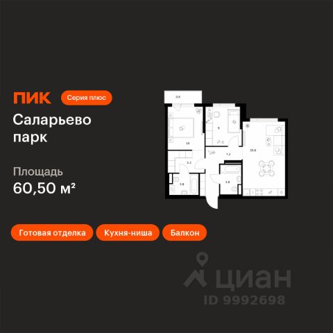 Прямая продажа от застройщика! Жилой Комплекс класса Комфорт+. Продаётся 2-к квартира номер 355 общей площадью 52.7 кв.м. на 7-м этаже 16 этажного здания. Чистовая отделка. Цена с учётом скидки. Особенности квартиры: - Организуем показ в удобное для вас время! - Линейная планировка - максимальная функциональность и удобство. - Увеличенная ширина окна/окон - больше света и визуального простора. - Раздельный санузел - больше удобства для всех членов семьи. - Можно оборудовать рабочее место - комфорт для работы и учёбы. - Линейная кухня - функциональность и практичность в одном решении. - Гардеробная - удобство для хранения и организации вещей. - Ниша под шкаф - компактное и удобное место для вещей. - Лоджия - уютное место для отдыха и тишины. Квартира с чистовой отделкой. Раскройте свою индивидуальность в создании своего уникального проекта, а трудоемкий ремонт мы возьмем на себя! Вы идете в ногу со временем и предпочитаете современные, универсальные дизайнерские решения? Или вы любитель строгой лаконичной классики? Тогда наши интерьеры придутся вам по душе! Выбирайте то, что ближе лично Вам и реализуйте свои задумки вместе с нами! Информация о комплексе: Микрорайон спроектирован по концепции "без машин": безопасные пешеходные зоны, дворы без автомобилей. Для гостей и перевозки грузов - сквозные подъезды с внешней стороны и паркинги на 7 этажах. Безбарьерная среда для колясок и маломобильных групп, повсеместное видеонаблюдение. Удобство и порядок без ущерба для комфорта жителей. Транспортная доступность: "1-й Саларьевский" в Новой Москве: 2 км от МКАД, 5 минут пешком до метро "Саларьево". Удобный выезд на Киевское шоссе для автомобилистов. Рядом ТЦ "Саларис" с покупками и развлечениями для всей семьи. Личный автотранспорт: До Киевского шоссе - 0,2 км До МКАД - 2,4 км До Калужского шоссе - 5 км До Ленинского проспекта - 3,2 км Общественный транспорт: До станции метро "Саларьево" - 7 мин пешком До остановок наземного транспорта - 5-10 мин пешком До Ленинского проспекта на автобусе - 10 мин Внутренняя инфраструктура: Во дворе царит беззаботная атмосфера: магазины первой необходимости, уютные кафе и кофе-пойнты. На бульваре - уличные выставки, шахматные столы и световые качели. Свой детский сад на 225 мест и муниципальная школа на 450 учеников плавно сопровождают взросление детей. Рядом - развитая инфраструктура: фитнес-центры, парки, ТРЦ для шопинга, салоны красоты и рестораны. Всё в шаговой доступности или в паре минут на велосипеде. Идеальная среда для жизни - каждый элемент продуман для комфорта и радости. Квартира с чистовой отделкой: ваш стиль без ремонта. Выбирайте современный дизайн или классику - мы воплотим ваши идеи. Готовые интерьеры для уникального дома.