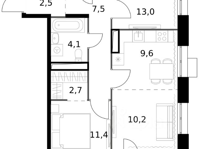 Строим кварталы для жизни с заботой о будущем. Предлагаются 2-комнатные апартаменты бизнес-класса площадью 65,72 кв.м в корпусе 2.3 на 7-м этаже, в жилом комплексе "Тропарево Парк". Проект строится полностью с отделкой, которая включает ламинат, обои под покраску, натяжной потолок. Установлены двойные стеклопакеты увеличенного формата до 180 см, которые не только сохраняют тепло в доме, но и пропускают много солнца, делая комнаты светлее. Стены в ванной и санузлах отделаны керамогранитом под мрамор, установлена вся нужная сантехника. Для стиральной машины уже предусмотрено место. Прописка не предусмотрена в рамках юридического статуса - апартаменты. Приобрести апартаменты возможно по специальным акциям от застройщика, с текущими условиями акций можно ознакомиться в блоке "Акций". Цена динамическая и может отличаться, уточняйте актуальность у застройщика. "Тропарево Парк" — комплекс апартаментов бизнес-класса рядом с Ленинским проспектом, в Новой Москве. Находится всего в 10 минутах пешком от станции метро "Румянцево". Включает 7 жилых корпусов высотой от 16 до 23 этажей, приватные дворы-сады, обширную зеленую территорию с общественными пространствами. Из части апартаментов открываются виды на Тропаревский лесопарк, расположенный рядом.