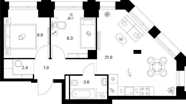 Строим кварталы для жизни с заботой о будущем. Предлагаются 2-комнатные апартаменты бизнес-класса площадью 65,72 кв.м в корпусе 2.3 на 7-м этаже, в жилом комплексе "Тропарево Парк". Проект строится полностью с отделкой, которая включает ламинат, обои под покраску, натяжной потолок. Установлены двойные стеклопакеты увеличенного формата до 180 см, которые не только сохраняют тепло в доме, но и пропускают много солнца, делая комнаты светлее. Стены в ванной и санузлах отделаны керамогранитом под мрамор, установлена вся нужная сантехника. Для стиральной машины уже предусмотрено место. Прописка не предусмотрена в рамках юридического статуса - апартаменты. Приобрести апартаменты возможно по специальным акциям от застройщика, с текущими условиями акций можно ознакомиться в блоке "Акций". Цена динамическая и может отличаться, уточняйте актуальность у застройщика. "Тропарево Парк" — комплекс апартаментов бизнес-класса рядом с Ленинским проспектом, в Новой Москве. Находится всего в 10 минутах пешком от станции метро "Румянцево". Включает 7 жилых корпусов высотой от 16 до 23 этажей, приватные дворы-сады, обширную зеленую территорию с общественными пространствами. Из части апартаментов открываются виды на Тропаревский лесопарк, расположенный рядом.