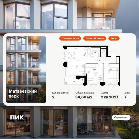 О квартире Продаётся 2-комнатная квартира общей площадью 65.2 кв.м. без отделки. Квартира расположена на 7 этаже корпуса 5.7 в жилом комплексе бизнес-класса "Среда на Лобачевского" в пешей доступности от метро "Аминьевская". О жилом комплексе "Среда на Лобачевского" полностью соответствует критериям современного жилого пространства. Взяв за основу рациональный подход, мы гармонично соединили дизайн, актуальные тренды и функциональность. Продуманный современный экстерьер и функциональные планировки внутри, приватные пространства и разнообразные досуговые зоны для каждого члена семьи — все это "Среда на Лобачевского". Инфраструктура Район отлично развит и наполнен жизнью, здесь уже есть вся необходимая инфраструктура — детские сады, школы, медучреждения, торговые центры, благоустроены парки для прогулок и отдыха, удобен и легкодоступен городской транспорт. Рядом расположены учебные корпуса крупных университетов — МГУ, МГИМО и РАНХиГС. Школы и детские сады в районе занимают высокие позиции в городских рейтингах, поэтому вам не придется беспокоиться о качестве образования детей. Как и об отдыхе: поблизости расположены живописные пруды, реки и парки. Это Парк Олимпийской деревни, Парк имени 50-летия Октября, Мещерский парк и Очаковские пруды. Теперь поставить галочки в еженедельном чек-листе "спорт-прогулки-встречи с друзьями" можно, не покидая любимый район. Особенности Особое внимание в проекте уделяется созданию функциональных пространств не только внутри дома, но и за его пределами. В ландшафтном парке "Среды на Лобачевского" расположены крытые зоны для спокойного времяпровождения, места для активного отдыха и спорта, коворкинг, соседский комьюнити-центр, водные объекты. —Ландшафтный парк во дворе. —Водный сад с зонами отдыха. —Зоны коворкинга. —Дизайнерские гранд-лобби. —Бесключевой доступ. —Подземный паркинг.