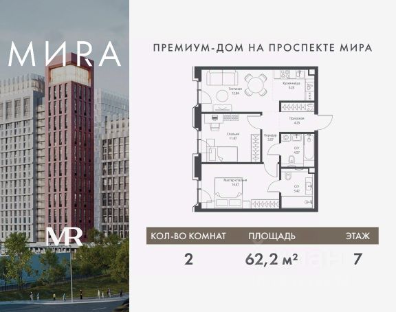 Прямая продажа от застройщика. Продаётся 2-комнатная квартира общей площадью 73.20 м² без отделки в доме премиум-класса МИRА на 7-м этаже 17 этажного дома. Квартира расположена в корпусе 1. Дом премиум-класса МИRA это: • Спокойный район с богатой историей и сложившейся инфраструктурой • Авторская архитектура на стыке классики и современности • Вход в парк прямо из жилого комплекса • Панорамные виды на Яузу, парки, ВДНХ и скульптуру "Рабочий и колхозница" • Удобные сервисы и безопасность для каждого резидента Расположение: Жилой квартал расположен в Алексеевском районе на северо-востоке Москвы, на второй линии домов, таким образом вы сможете дистанцироваться от шума и суеты проспекта Мира, но при этом будете жить недалеко от этой важной городской магистрали. Прямо у дома: • Парк Акведук • Река Яуза • Памятник "Рабочий и колхозница" Пешком: • 16 мин м. ВДНХ На автомобиле: • 12 мин ТТК • 15 мин Садовое кольцо • 12 мин Национальный парк "Лосиный остров" Благоустройство: Концепция благоустройства от бюро "ДРУЖБА" разработана в стиле "Лесная тропа". В уютном дворе расположились словно затерянные в лесу, площадки для отдыха. Они разделяются островками с травами, кустарниками, крупными камнями и деревьями, между которыми проходят узкие песчаные тропинки с деликатной подсветкой по вечерам. Центральной точкой притяжения для жителей станет главная площадь с фонтаном, которая открывается сразу из двух входных групп. Внутренний двор МИRA: • Детская площадка с зонами для игр малышей до трех лет и детей более старшего возраста • Спортивная площадка с профессиональным оборудованием для тренировок • Декоративные перголы • Воздушный арт-объект с подсветкой, похожий на облако • Чайный домик, где в отдельном отапливаемом павильоне можно в любое время года попить кофе с соседями или устроить камерное семейное чаепитие • Зоны для работы и отдыха с гамаком под навесом, скамейками и креслами Инфраструктура и окружение: В Алексеевском районе есть огромные благоустроенные парки, магазины, гимназии с высоким рейтингом и филиалы ВУЗов, частные и государственные детские сады, модные кофейни и фитнес-центры. В квартале МИRА предусмотрены: • 2 ресторана с видом на парк Акведук • 3 кафе • фитнес-студия • подземный паркинг на 330 машино-мест Компания MR предлагает своим клиентам специальные условия приобретения квартир в рамках программ ипотечного кредитования от банков-партнеров.