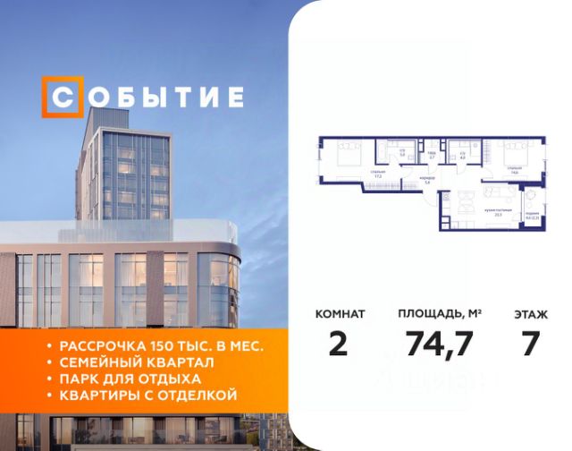 Ставка 7,9% на первые 12 месяцев, ПСК от 15,198% до 21,499%, далее ПСК от 22,022% до 24,935%, ставка 21,59%. Первоначальный взнос от 20,1%, срок кредита от 3 до 30 лет. Ипотеку предоставляет АО "Альфа-Банк", ген. лицензия ЦБ РФ 1326 от 16.01.2015. Беспроцентная рассрочка от застройщика. Выгода до 14%. Продается 2-комнатная квартира на 7 этаже, 61.9 кв.м. площади в жилом комплексе "Айс Тауэрс", который расположен в Западном административном округе Москвы. Архитектура комплекса отличается панорамным остеклением фасадов. Квартиры продаются с опциональной предчистовой отделкой. В комплексе установлены системы видеонаблюдения, климат-контроля и элементы системы "умный дом". Территория и расположение На придомовой закрытой территории обустроены детские площадки, спортивные площадки и места для отдыха. Комплекс граничит с особо охраняемой природной зоной, что обеспечивает доступ к прогулочным маршрутам. Инфраструктура комплекса • Общественное пространство с универсальными залами, коворкингом и библиотекой. • Помещения для детских занятий и мастер-классов. • Предусмотрены кабинеты для приема специалистов (стилистов, массажистов). В комплексе работают круглосуточная консьерж-служба и служба доставки (внутри комплекса). Доступны услуги парковки и помощи с багажом. Для повседневного удобства предусмотрены: • Колясочные и велосипедные хранилища. • Душевые для домашних животных и груминг. • Мобильное приложение для управления сервисами.