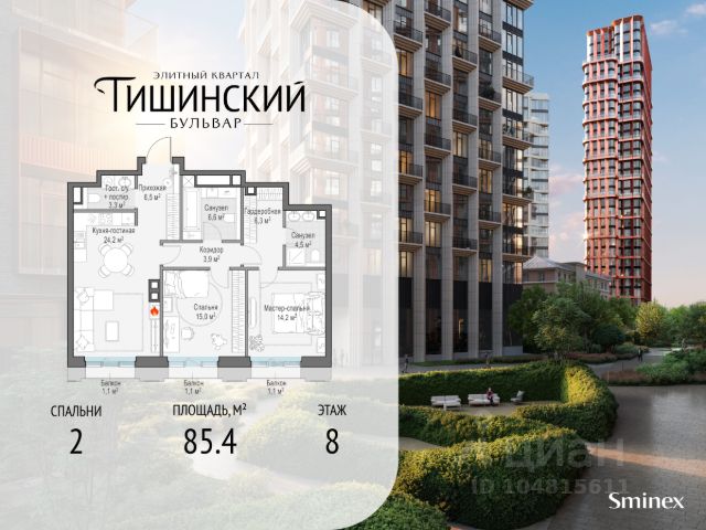 Продаются апартаменты с сервисом 5* отеля на 8-м этаже общей площадью 104.1 метров с 2-мя спальнями и кухней-гостиной. Дом готов. О жилом комплексе Исключительный проект на главной улице Москвы, меняющий эстетику жизни в современном мегаполисе. Компания Vesper представляет проект на Тверской — апартаменты класса de luxe с отделкой и мебелью, с сервисом и инфраструктурой. Проект Vesper Tverskaya завершает архитектурный ансамбль Тверской, занимая последний свободный участок главной улицы города — в самом центре культурной, деловой и ночной жизни Москвы. Два здания, в которых расположены апартаменты, создают единый ансамбль. Они соединены общими этажами, где расположены wellness-клуб с бассейном и СПА и паркинг. При этом у каждого из зданий отдельный вход. О застройщике Девелопер проекта Vesper специализируется в премиальном сегменте клубной жилой недвижимости. Портфель компании включает в себя 22 проекта в Москве и странах Европы. Актуальные архитектурные проекты, индивидуальный дизайн, передовые технологии, качественные материалы и лучшие мировые практики воплощены в каждом доме компании. Расположение и транспортная доступность Расположение в самом центре, на Тверской улице, создает особый ритм жизни. Всё, чем может заинтересовать один из крупнейших мегаполисов мира, располагается прямо перед вашими окнами.Всего в паре шагов — Патриаршие пруды, один из самых модных и концептуальных районов города. Гастрономические рестораны и энотеки, театры, музеи, лучшие школы — формируют идеальную среду для проживания в мегаполисе. Из апартаментов открываются панорамные виды на динамичную главную улицу города, Триумфальную площадь, исторические особняки. Архитектура Здания, проект которых разработан архитектурным бюро SPEECH под руководством Сергея Чобана, виртуозно балансируют между классической и новаторской концепциями. Проект органично вписывается в элегантный ряд исторических зданий Тверской, привнося свежий акцент своей современной интерпретацией классических форм и пропорций. Все апартаменты предлагаются с высококачественной отделкой с использованием мрамора, дерева ценных пород и текстиля, включающей оборудованные кухни и ванные комнаты. Дом оснащен многоуровневой системой очистки воды, централизованной системой кондиционирования и повышенной шумоизоляцией окон. Инфраструктура Wellness-клуб с 20 метровым бассейном, фитнес центр и СПА, просторные lounge-зоны — все эти преимущества доступны владельцам апартаментов. Доставить ужин из ресторана к приходу гостей или сделать уборку дома к возвращению из командировки — все это можно доверить сервису Vesper Tverskaya, не сомневаясь в качестве результата. Сервисы: -Консьерж-сервис 24/7 -Портье -Услуги горничной -Техническое обслуживание апартаментов Техническое оснащение дома: -Инновационная система микроклимата TION -Увлажнение воздуха, система центрального кондиционирования типа VRF -Многоуровневая система очистки воды -Бесперебойное обеспеч