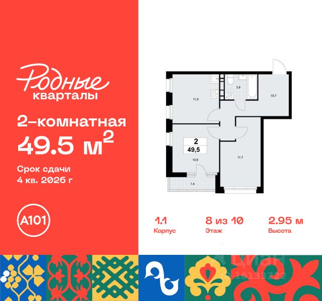 Продается двухкомнатная квартира с отделкой в 9 фазе города-парка "Первый Московский". Общая площадь квартиры - 63,9 кв. м, этаж 8 из 19. Срок сдачи - 2 квартал 2026 года. Тип дома - монолитный. В квартире будет выполнена высококачественная отделка "под ключ". На выбор представлены два стиля отделки: - Classic (классический стиль) - традиционное сочетание материалов и фактур - тёмный, тёплый по тону пол и светлые нейтральные стены, керамогранит с рисунком под мрамор. - Smart+ (современный стиль) - нейтральная цветовая гамма с использованием бетонных фактур и темного керамогранита, керамическая плитка до потолка в ванной и санузле. Независимо от того, какой стиль отделки выберите Вы, можете быть уверенными, что цветовое сочетание будет актуальным долгие годы. Город-парк "Первый Московский" расположен всего в 7 км по Киевскому шоссе от МКАД на территории Новой Москвы. Из города-парка прямой выезд на Киевское шоссе и трассу Солнцево-Бутово-Варшавское шоссе. ТРАНСПОРТНАЯ ДОСТУПНОСТЬ: - 5 мин. на личном автомобиле или 10 мин. на автобусе 189 и 876 до станции метро "Филатов Луг" - 20 мин. пешком до станции метро "Филатов Луг" ИНФРАСТРУКТУРА И БЛАГОУСТРОЙСТВО: 9 фаза сочетает в себе максимальную близость данной фазы строительства к парку Филатов луг. Основной акцент в благоустройстве сделан на разнообразные детские площадки и развивающие комплексы, с зонами для активного и спокойного отдыха взрослых. В каждом из домов предусмотрены кладовые помещения на -1 этаже и коммерческие помещения на 1 этаже. АВТОРСКИЙ ДИЗАЙН: Входные группы выполнены по авторскому дизайну, оснащены системой "тёплый пол". В каждой входной группе будет располагаться комфортабельная зона ожидания. При входе предусмотрено помещение для хранения колясок и на -1 этаже располагается велопарковка.