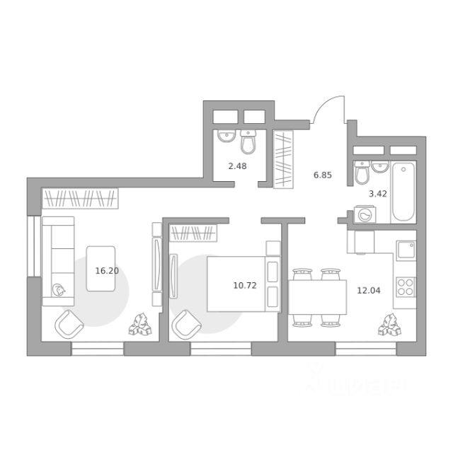 Продаётся 2-комнатная квартира 332, площадью 51,71 м², на 8 этаже в ЖК "Живописный" корпус 2.2. Стоимость — от 10661197 руб. Квартира без отделки, планировка угловая, окна на улицу.