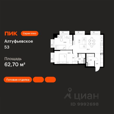 Продаётся 2-комн. квартира площадью 59,7 кв.м на 8 этаже 22 этажного дома (Корпус 1.1, Секция 1) проекта ПИК Алтуфьевское 53. Светлый просторный подъезд на уровне земли, функциональная планировка, большие окна, c отделкой. Проект "Серии плюс" возводится на северо-востоке Москвы. Рядом — удобный выезд на Алтуфьевское шоссе, а оттуда — на ТТК и МКАД, так что до центра Москвы вы доедете на машине примерно за 20 минут. До станции метро "Отрадное" можно доехать на транспорте за 15 минут. За 20 минут получится доехать до станции "Бибирево". Столько же займёт прогулка до станции МЦД "Дегунино". Архитектурную концепцию проекта разработало российское бюро M.A.M. Искусная работа с формой зданий позволила проекту воплотить в себе современную элегантность и функциональность. В проекте представлено множество планировок семейного формата: с мастер-спальнями и комнатами, разнесёнными по разным сторонам квартиры, чтобы у каждого было своё личное пространство. Большие семьи также оценят удобные планировки с постирочными и гардеробными. А также уникальные форматы квартир с террасами, балконами и лоджиями. В проект входят монолитные дома, два детских сада и подземный паркинг. На территории будет городская школа. Во дворах мы построим уютные парки с детскими площадками и местами для отдыха. Здесь вы сможете даже смотреть кино и работать — для этого во дворах-парках будет Wi-Fi. Чуть дальше от домов мы разместим спортивные площадки, чтобы шум от них не мешал жителям. В тихих и быстрых лифтах будут усилители связи, чтобы она не прерывалась и жители продолжали говорить по телефону или проверять соцсети даже перемещаясь между этажами. В окружающем районе есть всё для комфортной жизни: детские сады, школы, торговые центры, парки для прогулок, фитнес-клубы и даже бассейн. Артикул 1003716 (Застройщик ООО СЗ "Перспективные решения")