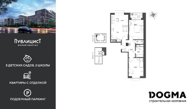 Продаётся 2-комнатная квартира в строящемся доме (Корпус 4), срок сдачи: IV-кв. 2026, общей площадью 61.9 кв.м., на 8 этаже. Расположение, транспортная доступность