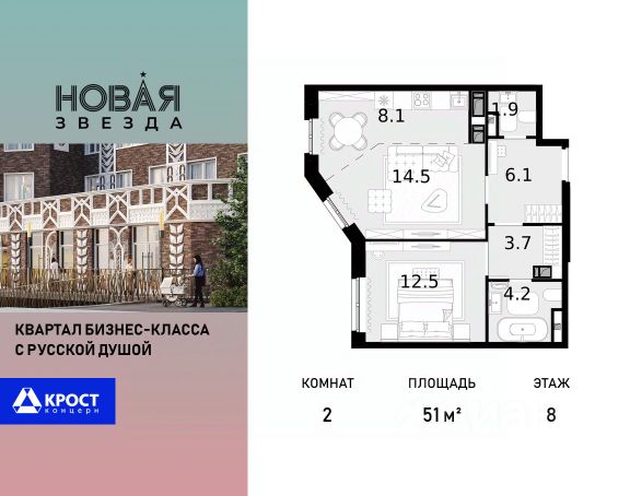 Продаётся 2-к квартира 44.3 кв.м. на 8-м этаже 22 этажного дома, корпус 6 - Резиденция "Хабаровск". Без отделки. Легендарный квартал "Новая звезда" продолжается II очередью, которая спроектирована как мультифункциональный кластер. ЖК "Новая Звезда" расположен на территории Новой Москвы, в 10 мин. от м. Теплый стан и в 9 мин. пешком от строящейся станции метро "Бачуринская". Дизайн квартала спроектирован так, чтобы создать 2 города — Гостиный двор и комплекс жилых резиденций. Гостиный двор это стилобат, в котором разместятся рестораны, магазины, спортивные секции, детские кружки. Это место для активной городской жизни прямо в вашем квартале. Гостиный двор, безусловно, является уникальным форматом организации общественной жизни, предлагая жителям квартала весь необходимый спектр услуг в шаговой доступности от дома.. Жителям II очереди квартала "Новая звезда" будут доступны все инфраструктурные преимущества единого квартала: - образовательный кластер с уже построенной инновационной школой нового поколения; - спортивная инфраструктура; - торговые площади с услугами на первых этажах жилых домов.Прямая продажа от застройщика ООО СЗ "ГСД".