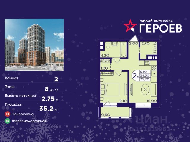 Продаётся 2-комнатная квартира в формате евро 35.20 кв. м. в жилом комплексе "Героев" в Балашихе, Железнодорожный. Квартира расположена на 8 этаже 410 корпуса. В наличии квартиры с отделкой. Всего 40 минут до центра Москвы. При покупке квартиры в сданном доме ключи выдаются сразу! Жилой квартал "Героев" - это уютный проект для семей с детьми. В квартале созданы все условия для досуга всех возрастов: игровые и спортивные площадки, места для отдыха и прогулочные зоны. За 15 минут можно дойти от дома до Ольгинского лесопарка, популярного места для отдыха на свежем воздухе. На территории жилого комплекса уже открыт детский сад на 250 мест и началось строительство еще одного - для 220 малышей, а также школы для 1320 учеников. Рядом работают магазины, кафе, супермаркеты, пункты выдачи. Преимущества: • В уютных светлых квартирах с просторными кухнями-гостиными удобно встречать гостей и проводить время наедине друг с другом. • Благодаря увеличенному остеклению в комнатах много света. • Квартиры продаются с отделкой, можно заселяться сразу после получения ключей.