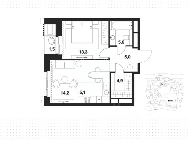 Двухкомнатная wellness-резиденция площадью 61.6 кв. м. на 8 этаже с видом на двор в доме премиум-класса Springs. В квартире выполнена чистовая дизайнерская отделка. Резиденция наполнена светом и воздухом, благодаря панорамному остеклению и высоким потолкам. На первом этаже дома расположены: - фитнес-центр с бассейном; - SPA с хаммамом; - бьюти-зона с массажным кабинетом. - ресторан. Все сервисы доступны исключительно для резидентов. Всего в 2 минутах ходьбы от дома находится заповедный парк Фили прекрасное место для спокойного и активного отдыха. Зеленый массив, набережная, велотропы и открытые зоны для йоги, а также шахматный клуб, летний кинотеатр, множество беседок и кофеен. До делового комплекса Москва-Сити всего 16 минут, а центр — в 14 минутах езды по Кутузовскому проспекту. Удобный выезд к Рублёвскому шоссе — отличная возможность на выходных сбежать с детьми за город, потратив на дорогу меньше получаса. Концепция благоустройства Springs, разработанная студией Wowhaus, воплощает идею взаимного проникновения парка и озеленения внутренней территории: естественная растительность, дополненная акцентами из цветников, плавно вступает во двор. В сочетании с бионической архитектурой дом является органичным продолжением природного ландшафта парка.
