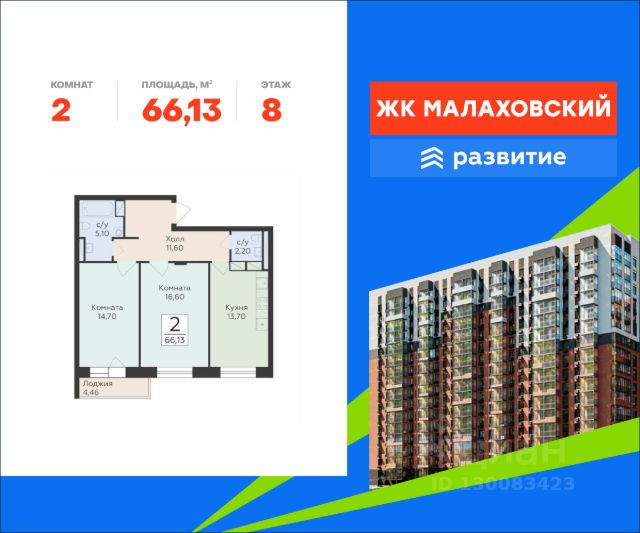 Продается 2-комнатная квартира площадью 66.13 . Квартира расположена на 8 этаже 17 этажного дома, в 201 корпусе. ""Малаховский" - жилой комплекс в Раменском районе Подмосковья, идеально подходящий для семей с детьми. Проект от ГК "Развитие" находится в тихом и зеленом микрорайоне Родники и отличается удобной транспортной связью с Москвой и Люберцами. Три дома высотой 17 этажей с видами на озеро и парк, просторные квартиры, приватный двор-патио с ландшафтным дизайном и доступная инфраструктура обеспечат жителям новых квартир все преимущества городской жизни в живописном природном окружении. Транспортная доступность - 18 км от МКАД и удобный выезд на Егорьевское шоссе и строящуюся магистраль МЕТК (Москва - Егорьевск - Тума - Касимов); - 29 мин. до метро "Лермонтовский проспект" Архитектура Дома отличаются высокой тепло- и шумоизоляцией, долговечностью, высоким уровнем энергоэффективности, экологичности и современным внешним видом. Фасады выполнены в спокойной цветовой гамме. Из окон с широкоформатным остеклением открываются виды на березовую рощу, озеро и зеленые дворы. Высота потолков - 2,7 метров. Начиная с третьего этажа во всех квартирах предусмотрены лоджии с панорамным остеклением. Планировочные решения Планировки отличаются продуманностью и правильностью формы, это облегчает зонирование, хранение и расстановку мебели. Предусмотрены отдельные гардеробные и лоджии, во всех, включая однокомнатные, по два санузла и просторные прихожие. Все квартиры сдаются с отделкой white box, которая позволит воплотить индивидуальный дизайн-проект по своему вкусу. На выбор доступны варианты чистовой отделки под ключ: "комфорт" и "бизнес" с премиальными решениями и применением лучших дизайнерских материалов. Благоустройство - просторный холл с витражным остеклением; - 3 лифта в каждом подъезде; - многоуровневое освещение; - двор с ландшафтным дизайном; - пешеходные бульвары и велодорожки; - концепция "умный двор" - умное зонирование пространства; - тихие лаунж-зоны в окружении деревьев; - детские площадки с оборудованием из природных материалов; - уличные тренажеры и спортивные корты; - двор, свободный от машин; - большой наземный паркинг отдельно от двора - гарантия безопасности - видеонаблюдение и охрана. - все повседневные сервисы (кафе, магазины, салоны красоты) прямо в вашем доме. Окружение - благоустроенная березовая роща с дорожками и Малаховское озеро для пикников и прогулок; - Петропавловский парк с благоустроенным детским городком и волейбольной площадкой; - фитнес-клуб, бассейн, спортивные площадки и велодорожки в многочисленных парках микрорайона Родники; - 2 школы, гимназия и детский сад в шаговой доступности; - ТЦ "Родники" с рестораном и супермаркетом; - ДК "Родники" с мероприятиями и мастер-классами для детей и взрослых.