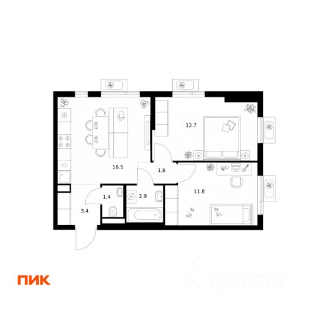 Прямая продажа от девелопера. В жилом квартале, расположенном в северо-западной части города Мытищи, продаётся 2-спальная квартира площадью 62.50 кв.м без отделки. Квартира расположена на 8 этаже 17-этажного дома, корпус 39, в жилом квартале комфорт-класса "Новое Медведково" (девелопер Ingrad). Расположение: Мытищи - один из ближайших спутников столицы, расположенный в живописной локации на северо-востоке Московской области в окружении лесопарков, водохранилищ и озер. Уровень развития социальной, торговой и культурной инфраструктуры города приближает его к Москве, но за счёт компактности самих Мытищ делает ещё удобнее. Отличная транспортная доступность: "Новое Медведково" возводится в северо-западной части города Мытищи в Микрорайоне 17А, всего в 6 км от МКАД, вблизи остановок общественного транспорта и в непосредственной близости от Пироговского лесопарка (400 м). 28 корпусов уже введены в эксплуатацию. Путь до Москвы по Волковскому шоссе составляет не более 10 минут. Добраться можно также на электричке - 20 минут по Ярославскому направлению до станции "Ядреево", на автобусе или маршрутке до станции метро "Медведково" менее, чем за полчаса. Инфраструктура: Комплексное развитие территории проекта "Новое Медведково" предполагает строительство полной собственной инфраструктуры одновременно с возведением жилых домов, которая будет включать в себя: Лингвистическую гимназию с 4 иностранными языками на 768 учеников (уже построена и работает), 5 детских садов общей емкостью 1 060 мест (два детский сада на 400 малышей построены и работают), Школу общей емкостью 1 735 мест, медицинский центр, Спортивный комплекс и многоуровневые парковки. Помещения под коммерческую инфраструктуру на первых (нежилых) этажах домов уже арендованы собственниками бизнеса: аптеки, магазины, супер- и минимаркеты, точки бытового и сервисного обслуживания, салоны красоты, пекарни, кондитерские, развивающие студии для детей. Стоимость квартиры - 16 440 000 Р. Срок сдачи - 4 квартал 2025. Более подробную информацию по объекту уточняйте по телефону и в отделе продаж.