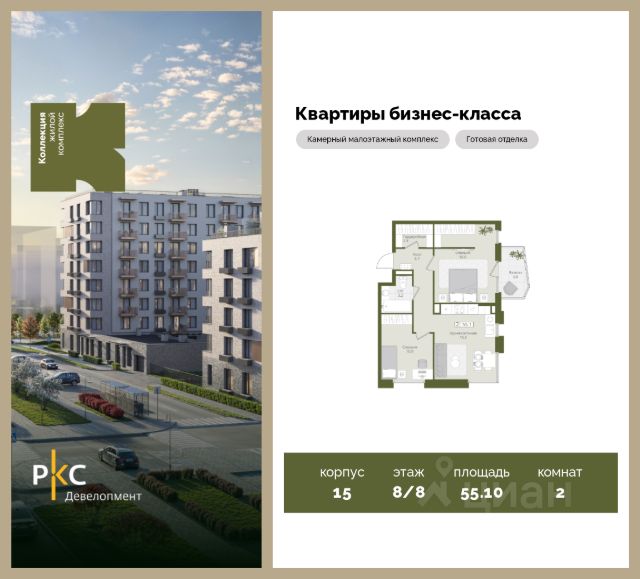 Агентам не звонить. Продается 2-комнатная квартира на 8 этаже с готовой отделкой от застройщика. Общая площадь 55,1 кв.м. На выбор представлены 3 вида дизайнерской отделки с использованием качественных материалов. Высота потолков 3 м. "Коллекция" это камерный среднеэтажный жилой комплекс бизнес-класса в престижном экологически чистом районе Подмосковья. Прекрасная экология и живописная природа, отсутствие промышленных зон и вредных предприятий. В проекте планируется строительство 5 корпусов средней этажностью (4-8 этажей) с террасами и угловыми окнами, строительство собственной инфраструктуры: три детских сада, школа, поликлиника, физкультурно-оздоровительный комплекс. Жителям будут доступны машино-места в подземном паркинге, кладовые помещения. Ввод в эксплуатацию 3 кв. 2028г. Развитая инфраструктура: Детские площадки будут выполнены в природных материалах, игровые комплексы с бизибордами, развивающие игровые установки для игр с песком. Спортивная инфраструктура: столы для настольного тенниса, тренажеры, гимнастический комплекс. В пешей доступности находятся парк Дружба, загородный клуб "Moscow Country Club", парк имени Карбышева. Это располагает к приятным прогулкам и спокойному отдыху жителей комплекса. Транспортная доступность: 13 км от МКАД, 14 минут до МЦД-2 Нахабино, 26 минут до метро "Митино", 30 минут до метро "Пятницкое шоссе". В ближайшей перспективе - расширение местной дорожной сети и запуск новых маршрутов до ж/д станций и станций метро.