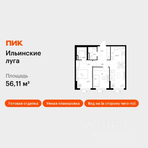 Продаётся 2-комн. квартира площадью 56,11 кв.м на 8 этаже 9 этажного дома (Корпус 4.1, Секция 4) проекта ПИК Ильинские луга. Светлый просторный подъезд на уровне земли, функциональная планировка, большие окна, c отделкой. Жилой район "Ильинские луга" находится в 10 километрах от МКАД по Новорижскому шоссе, в 20 минутах на автомобиле от станций метро "Волоколамская", "Тушинская" и "Строгино". В будущем ближе к проекту, в 9 минутах пути на машине, откроется станция "Ильинская" Рублёво-Архангельской линии, которая будет соединять Арбатско-Покровскую линию и Большую кольцевую линию. Сейчас в квартале начались продажи в корпусах 3.2, 3.3, 3.4, 3.5 и 3.6. "Ильинские луга" — масштабный проект, в который входит девять детских садов, четыре школы и поликлиника. Он строится в престижном и экологичном районе среди лесов и памятников природы. За 5 минут от жилого квартала можно доехать до Рублёво-Успенского шоссе, а за 30 минут — до центра Москвы. До крупного торгового центра "РИГАМОЛЛ" всего 5 минут на автомобиле, а до ТЦ "Твой дом" и гипермаркета "Глобус" — 10 минут. В "Ильинских лугах" строятся только девятиэтажные дома — такая архитектура соответствует спокойной жизни за городом. В каждом дворе-парке есть места для отдыха, детские и спортивные площадки. А ещё, здесь уже открыт большой PlayHub "Гравити" — современное игровое пространство с космической тематикой, холмами, зонами для игр и отдыха жителей любого возраста. На первых этажах уже работают магазины, кафе и пекарни. Места для отдыха от "Ильинских лугов" тоже недалеко: 10 минут на машине — и вы в музее-усадьбе "Архангельское". Также рядом находится Лохин остров — памятник природы, где водятся речные черепахи, есть места для кемпинга и возможность сплавиться по реке. Артикул 1016116 (Застройщик ООО "СЗ "ГРАДОЛИМП")