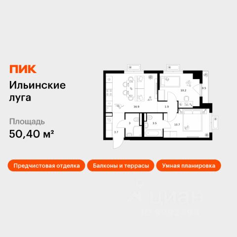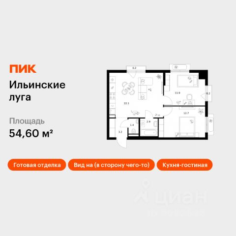 Продаётся 2-комн. квартира площадью 54,6 кв.м на 8 этаже 9 этажного дома (Корпус 3.1, Секция 2) проекта ПИК Ильинские луга. Светлый просторный подъезд на уровне земли, функциональная планировка, большие окна, c отделкой. Жилой район "Ильинские луга" находится в 10 километрах от МКАД по Новорижскому шоссе, в 20 минутах на автомобиле от станций метро "Волоколамская", "Тушинская" и "Строгино". В будущем ближе к проекту, в 9 минутах пути на машине, откроется станция "Ильинская" Рублёво-Архангельской линии, которая будет соединять Арбатско-Покровскую линию и Большую кольцевую линию. Сейчас в квартале начались продажи в корпусах 3.2, 3.3, 3.4, 3.5 и 3.6. "Ильинские луга" — масштабный проект, в который входит девять детских садов, четыре школы и поликлиника. Он строится в престижном и экологичном районе среди лесов и памятников природы. За 5 минут от жилого квартала можно доехать до Рублёво-Успенского шоссе, а за 30 минут — до центра Москвы. До крупного торгового центра "РИГАМОЛЛ" всего 5 минут на автомобиле, а до ТЦ "Твой дом" и гипермаркета "Глобус" — 10 минут. В "Ильинских лугах" строятся только девятиэтажные дома — такая архитектура соответствует спокойной жизни за городом. В каждом дворе-парке есть места для отдыха, детские и спортивные площадки. А ещё, здесь уже открыт большой PlayHub "Гравити" — современное игровое пространство с космической тематикой, холмами, зонами для игр и отдыха жителей любого возраста. На первых этажах уже работают магазины, кафе и пекарни. Места для отдыха от "Ильинских лугов" тоже недалеко: 10 минут на машине — и вы в музее-усадьбе "Архангельское". Также рядом находится Лохин остров — памятник природы, где водятся речные черепахи, есть места для кемпинга и возможность сплавиться по реке. Артикул 1001569 (Застройщик ООО "СЗ "ГРАДОЛИМП")