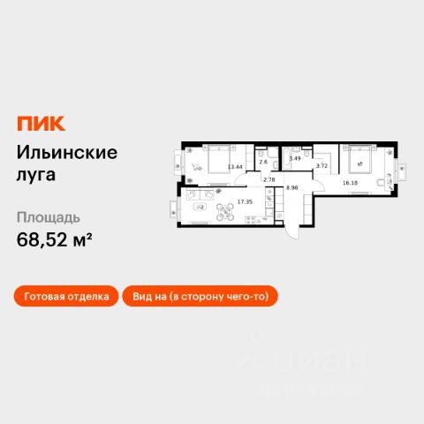 Продаётся 2-комн. квартира площадью 68,52 кв.м на 8 этаже 9 этажного дома (Корпус 4.1, Секция 5) проекта ПИК Ильинские луга. Светлый просторный подъезд на уровне земли, функциональная планировка, большие окна, c отделкой. Жилой район "Ильинские луга" находится в 10 километрах от МКАД по Новорижскому шоссе, в 20 минутах на автомобиле от станций метро "Волоколамская", "Тушинская" и "Строгино". В будущем ближе к проекту, в 9 минутах пути на машине, откроется станция "Ильинская" Рублёво-Архангельской линии, которая будет соединять Арбатско-Покровскую линию и Большую кольцевую линию. Сейчас в квартале начались продажи в корпусах 3.2, 3.3, 3.4, 3.5 и 3.6. "Ильинские луга" — масштабный проект, в который входит девять детских садов, четыре школы и поликлиника. Он строится в престижном и экологичном районе среди лесов и памятников природы. За 5 минут от жилого квартала можно доехать до Рублёво-Успенского шоссе, а за 30 минут — до центра Москвы. До крупного торгового центра "РИГАМОЛЛ" всего 5 минут на автомобиле, а до ТЦ "Твой дом" и гипермаркета "Глобус" — 10 минут. В "Ильинских лугах" строятся только девятиэтажные дома — такая архитектура соответствует спокойной жизни за городом. В каждом дворе-парке есть места для отдыха, детские и спортивные площадки. А ещё, здесь уже открыт большой PlayHub "Гравити" — современное игровое пространство с космической тематикой, холмами, зонами для игр и отдыха жителей любого возраста. На первых этажах уже работают магазины, кафе и пекарни. Места для отдыха от "Ильинских лугов" тоже недалеко: 10 минут на машине — и вы в музее-усадьбе "Архангельское". Также рядом находится Лохин остров — памятник природы, где водятся речные черепахи, есть места для кемпинга и возможность сплавиться по реке. Артикул 1016240 (Застройщик ООО "СЗ "ГРАДОЛИМП")
