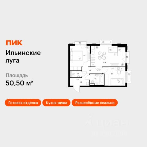 Продаётся 2-комн. квартира площадью 50,5 кв.м на 8 этаже 9 этажного дома (Корпус 3.1, Секция 3) проекта ПИК Ильинские луга. Светлый просторный подъезд на уровне земли, функциональная планировка, большие окна, c отделкой. Жилой район "Ильинские луга" находится в 10 километрах от МКАД по Новорижскому шоссе, в 20 минутах на автомобиле от станций метро "Волоколамская", "Тушинская" и "Строгино". В будущем ближе к проекту, в 9 минутах пути на машине, откроется станция "Ильинская" Рублёво-Архангельской линии, которая будет соединять Арбатско-Покровскую линию и Большую кольцевую линию. Сейчас в квартале начались продажи в корпусах 3.2, 3.3, 3.4, 3.5 и 3.6. "Ильинские луга" — масштабный проект, в который входит девять детских садов, четыре школы и поликлиника. Он строится в престижном и экологичном районе среди лесов и памятников природы. За 5 минут от жилого квартала можно доехать до Рублёво-Успенского шоссе, а за 30 минут — до центра Москвы. До крупного торгового центра "РИГАМОЛЛ" всего 5 минут на автомобиле, а до ТЦ "Твой дом" и гипермаркета "Глобус" — 10 минут. В "Ильинских лугах" строятся только девятиэтажные дома — такая архитектура соответствует спокойной жизни за городом. В каждом дворе-парке есть места для отдыха, детские и спортивные площадки. А ещё, здесь уже открыт большой PlayHub "Гравити" — современное игровое пространство с космической тематикой, холмами, зонами для игр и отдыха жителей любого возраста. На первых этажах уже работают магазины, кафе и пекарни. Места для отдыха от "Ильинских лугов" тоже недалеко: 10 минут на машине — и вы в музее-усадьбе "Архангельское". Также рядом находится Лохин остров — памятник природы, где водятся речные черепахи, есть места для кемпинга и возможность сплавиться по реке. Артикул 1001785 (Застройщик ООО "СЗ "ГРАДОЛИМП")