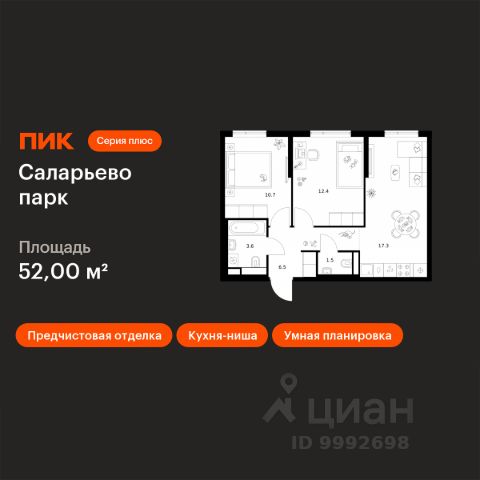 Продаётся 2-комн. квартира площадью 53,8 кв.м на 8 этаже 24 этажного дома (Корпус 82.4, Секция 4) проекта ПИК Саларьево парк. Светлый просторный подъезд на уровне земли, функциональная планировка, большие окна, предчистовая отделка. Жилой район "Саларьево парк" расположен в Новой Москве, в четырёх километрах от МКАД по Киевскому шоссе. Две станции метро: "Саларьево" и "Филатов луг", — находятся в пешей доступности от проекта. Дойти до них можно за 510 минут. В квартале уже создана качественная среда, где есть абсолютно всё для полноценной жизни, работы и отдыха. Благодаря удобному расположению проекта всё важное будет рядом: детские сады, школы, кафе и рестораны, шопинг в торговых центрах, фитнес и даже аэропорт. Все корпуса в квартале гармонично сочетаются, образуя единую городскую среду. Между собой их объединяет невысокая этажность и натуральная цветовая гамма. Здесь приятно гулять и проводить время на улице всей семьёй. В "Саларьево парке" создана уникальная образовательная среда, включающая в себя шесть школ, рассчитанных на 6 250 учеников. Две из них уже открыты, их посещает 2 300 детей. Также на территории "Саларьево парка" находится 12 детских садов, один из которых с бассейном. Сейчас уже открыты 7 садов. В "Саларьево парке" открыта уникальная игровая площадка — PlayHub "Оригами". Здесь есть ручей, горка-труба и рельефные холмы. Взрослые смогут отдохнуть в уютном кафе, пока дети играют. Также на территории проекта есть SportHub — большая спортивная зона, разделённая по интересам и возрастам. Здесь можно заниматься разными видами спорта: футболом, баскетболом, волейболом и стритболом. Зимой центральную часть площадки превращают в каток. Во дворах-парках жилого квартала есть места для отдыха, детские и спортивные площадки. На первых этажах домов расположены магазины, кафе и полезные сервисы. Также вблизи проекта есть несколько масштабных торговых центров. До ТЦ "Саларис" пять минут пешком, до "Рио", Metro Cash & Carry и "Леруа Мерлен" — пять минут на автомобиле. Артикул 1032577 (Застройщик ООО "Специализированный Застройщик "Тирон")