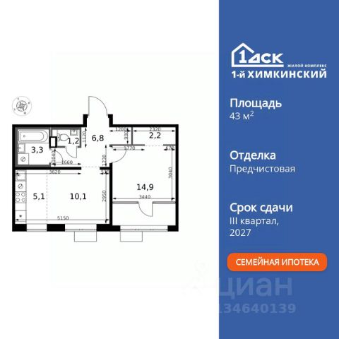 БЕЗ ПЕРВОНАЧАЛЬНОГО ВЗНОСА! • ИПОТЕКА 10% ДЛЯ ВСЕХ БЕЗ НАЦЕНОК • ДОСТУПНО ПО СЕМЕЙНОЙ ИПОТЕКЕ Прямая продажа от застройщика! Жилой Комплекс класса Комфорт. Продаётся 2-к квартира номер 95 общей площадью 48.4 кв.м. на 8-м этаже 17 этажного здания. Отделка Whitebox. Цена с учётом скидки. Особенности квартиры: - Угловая планировка - больше пространства для ваших идей. - Окно в ванной - натуральное освещение для уюта и комфорта. - Увеличенное количество окон - дополнительное освещение и свежий воздух. - Раздельный санузел - больше удобства для всех членов семьи. - Евроформат - просторное и удобное жилье с отличной планировкой. - Гардеробная - удобство для хранения и организации вещей. - Ниша под шкаф - компактное и удобное место для вещей. - Просторная лоджия - идеальное место для уютных вечеров. Квартира с предчистовой отделкой (White box). Вам не придется заниматься черновыми и трудоёмкими работы, а чистовую отделку и дизайн - сделайте на свой вкус. Информация о комплексе: Квартал класса комфорт плюс, где современное городское пространство граничит с удивительной природой вокруг. 1-й Химкинский расположен на территории в 102 га и органично вписан в природное окружение Химкинского леса и канала им. Москвы. В проекте предусмотрена богатая коммерческая инфраструктура с собственным торговым центром, общеобразовательные учреждения и социальные объекты. Изюминкой жилого комплекса будут спортивно-оздоровительный комплекс с термами и SPA и семейный парк развлечений. Транспортная доступность: ЖК "1-й Химкинский" дает возможность выбрать любой способ передвижения как до города, так и до самых разных объектов, которые могут представлять интерес для его жителей. Не важно, какой способ передвижения вы предпочитаете, успевать всегда и везде можно вне зависимости от выбора транспорта. - 8 мин. пешком (800 м) до остановки "Золотая Арка" -10 мин пешком (1 км) до остановки "Поворот на Ивакино" Внутренняя инфраструктура: - Безопасность: закрытые дворы без машин, безбарьерная среда и сквозные подъезды, камеры на детских площадках с возможностью трансляции на смартфоне - Идеальный отдых в кругу семьи: семейный парк развлечений на территории, торговый центр (2-х этажный) общей площадью более 8 тыс. кв. м с фудкортом - Образование: 3 детских сада и современная муниципальная школа на 2450 мест - Спортивная среда: закольцованный веломаршрут с навигацией, спортивный комплекс с термами, закрытый тренажерный зал и зоны ворк-аута - Социальные объекты: поликлиника со станцией скорой помощи, пожарное депо - Подземный паркинг и кладовые помещения на -1 этаже, станция техобслуживания и автомойка на территории