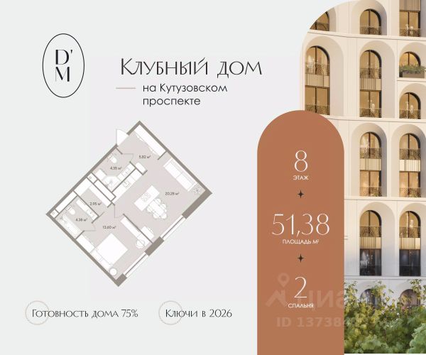 Клубный дом DORO MILLE расположен в одном из самых престижных и исторически значимых районов Москвы — Дорогомилово. Уникальная локация DORO MILLE, где гармонично сочетаются тишина, приватность и доступность ко всем важнейшим объектам столицы. Дорогомилово — это "тихий центр", предлагающий своим жителям не только спокойствие и уют, но и великолепную транспортную доступность. Клубный дом расположен всего в 7 минутах ходьбы от станции метро "Киевская", а также в непосредственной близости к Кутузовскому проспекту, одной из главных магистралей Москвы. Отсюда легко добраться до всех значимых деловых и культурных центров: в нескольких минутах езды Садовое и Бульварное кольцо, Кремль, Москва-Сити, ЦУМ и ГУМ. Комплекс расположен в глубине Дорогомиловских улиц, вдали от городского шума и суеты. Здесь царит атмосфера старомосковской аристократичности, где соседствуют исторические здания и современные комплексы. Каждый элемент в DORO MILLE продуман до мелочей: от элегантного фасада, состоящего из 343 арок, до просторных лотов с выверенной эргономикой и безупречного сервиса. Архитектура вдохновлена итальянским неоимпериализмом и испанским неомодернизмом, придавая зданию неповторимую легкость и изящество. Всего 150 апартаментов и 6 пентхаусов предлагают широкий выбор планировочных решений, включая студии, варианты с одной-четырьмя спальнями, каминами и верандами. Каждый лот спроектирован так, чтобы увеличить эффективное пространство и обеспечить максимальный комфорт для резидентов: окна в ванных комнатах, несколько гардеробных и просторные гостиные-столовые. Жители DORO MILLE смогут наслаждаться не только исключительными условиями проживания, но и полной приватностью. Закрытый двор-сад без машин, выполненный по проекту архитектурного бюро Wowhaus, превратится в собственный зеленый оазис в центре Москвы с функциональными зонами для отдыха и спорта. Проект был высоко оценен профессиональным сообществом, завоевав множество наград, включая премию Move Realty Awards за лучшие архитектурные решения и премию Urban Awards за создание нового формата недвижимости. Клубный дом DORO MILLE — это истинное воплощение мечты о городской жизни в окружении искусства, уюта и изящной архитектуры.